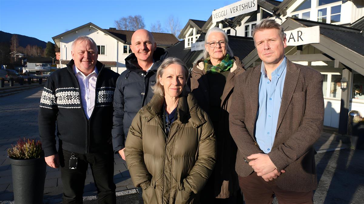 Bak fra venstre ordfører i Nore og Uvdal kommune, Oddvar Svendsen (Frp), Morten Stray Floberghagen, direktør Eiendomsforvaltning i Bane NOR, Liv Berven, daglig leder i reiselivsaktøren SvingOm. Foran Kari Charlotte Larsen, seksjonsleder kulturarv i Buskerud fylkeskommune og ordfører i Rollag kommune, Øystein Morten (Ap).