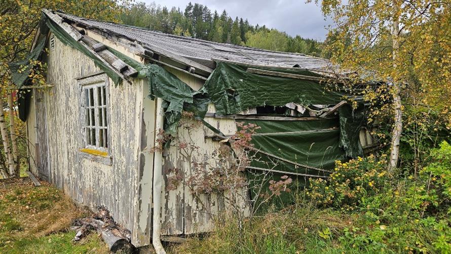 Forfallent stasjonsbygg på Eidsstryken ved Kravikfjorden.