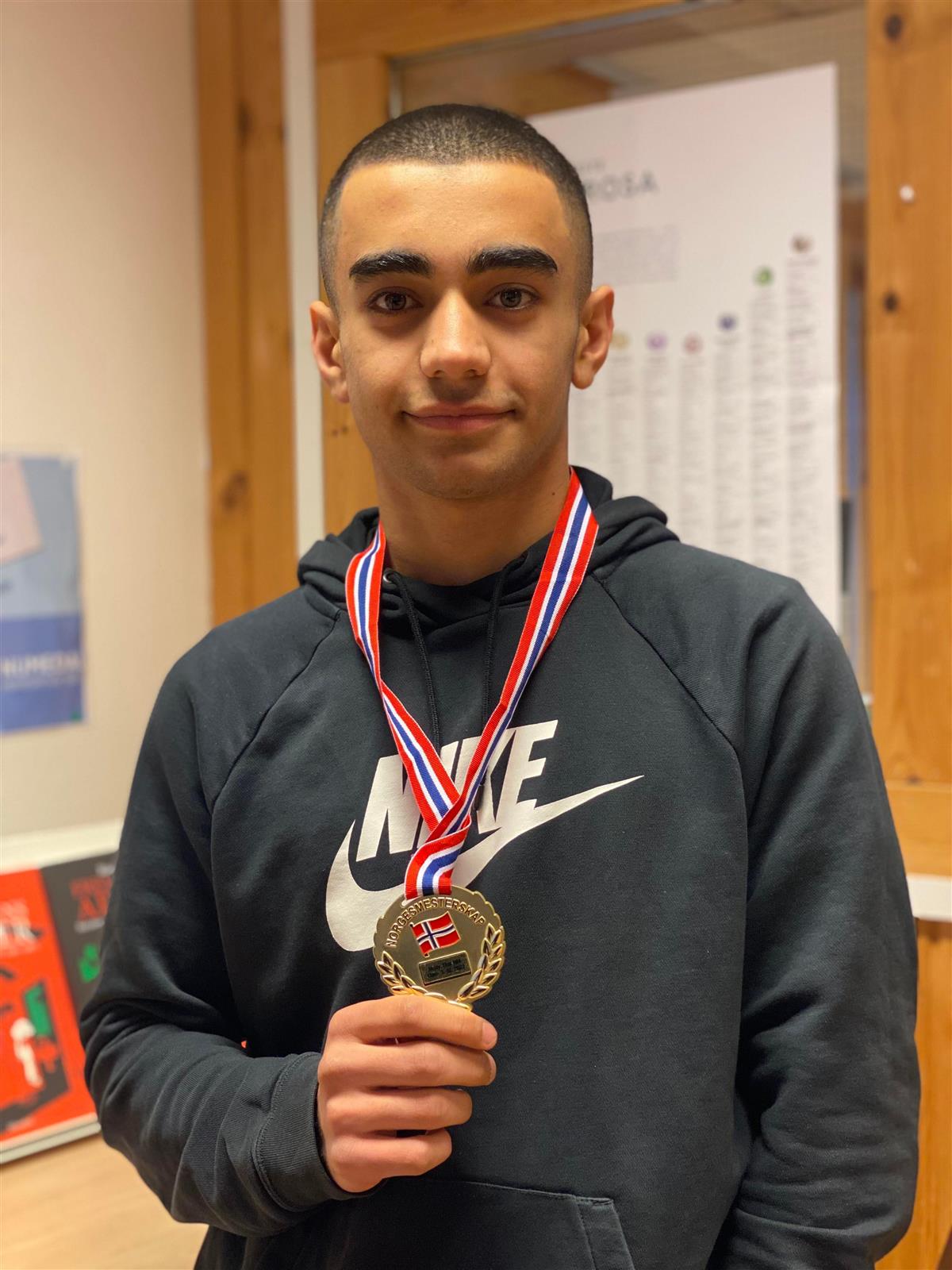 Ali Farouk Mohammad er fersk Norgesmester i kampsporten "muay thai", i juniorklassen 16 til 17 år, inntil 60 kilo. Han er også elev ved VG 1 studiespesialisering her ved Numedal videregående skole og hele skolen gratulerer!