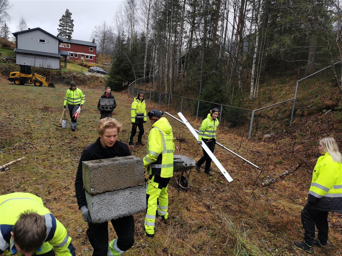 Prosjekt gapahukElever bærer materialer til gapahuk Henning Heiderby Vg1 bygg og anlegg jobber med å lage ny gapahuk til Nore barnehage. Fredag ble grunnarbeidet utført. Her kan du se bilder fra prosjektet. Publisert av Kari Auestad Tveiten Publisert 16.11.2020 10.52 Sist endret 11.01.2023 13.29
