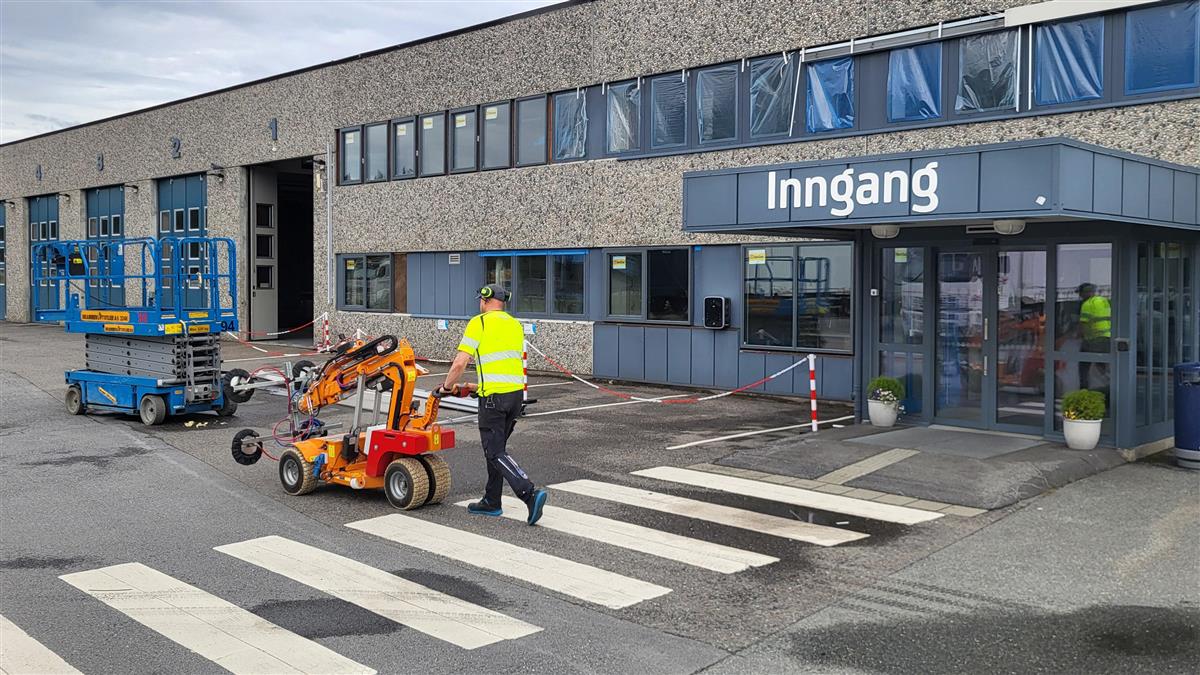 Bygg G på Åssiden videregående skole får nye vinduer i sommer.