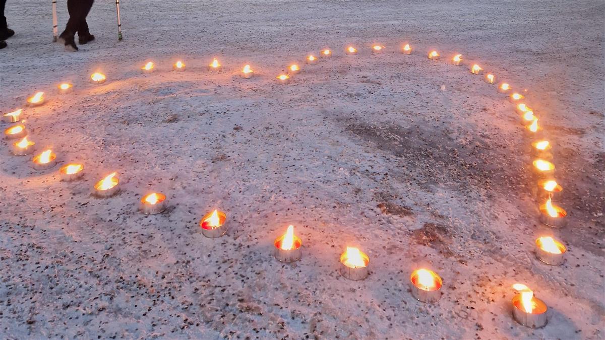 Et hjerte av fakler utenfor Bragernes kirke