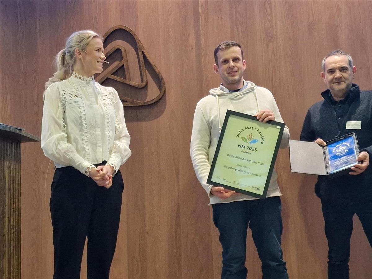 Onsdag ettermiddag sikret Kongsberg videregående skole seg NM-gull - Norges sunneste kantine videregående skoler - i regi av Opplysningskontoret for Frukt og Grønt.