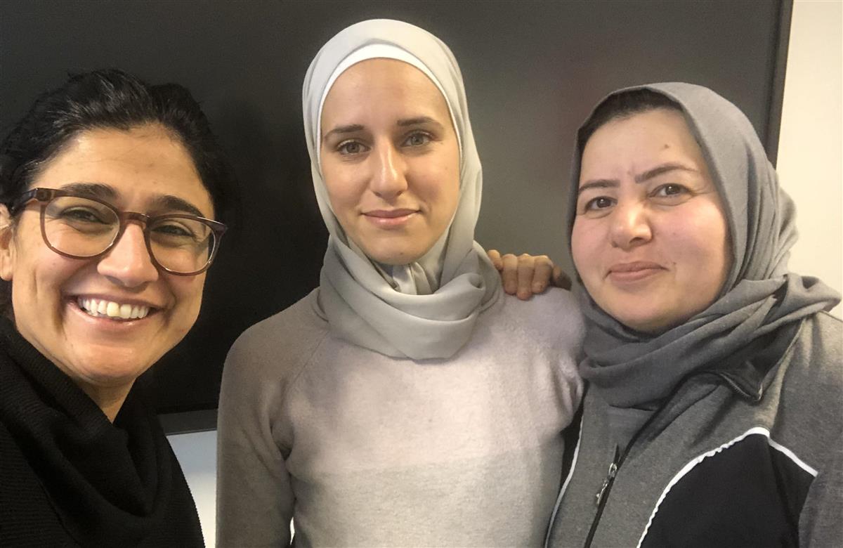 Marwa og Palwasha skal bli barne- og ungdomsarbeidere. Her med Nihal Sayilgan Bordvik, lærer i voksenopplæringen i Drammen kommune.