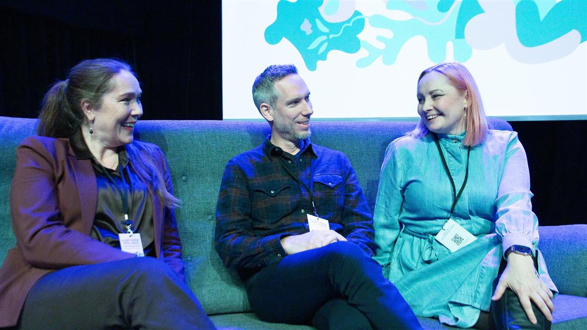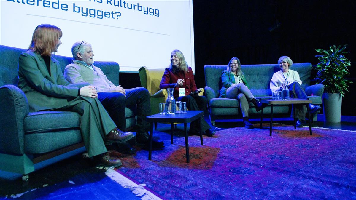 Panelsamtale i sofaen under konferansens første dag. Fra venstre Nora Dyrvik, Gunnar Grindaker, Marit Sehl, NIna G. Toft og Reni K. Odden.