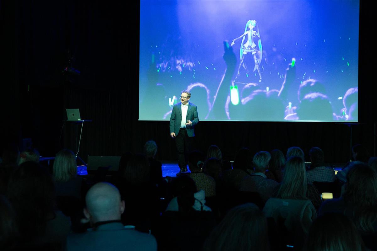 Professor i kunstig intelligens ved Universitetet i Agder, Morten Goodwin, viste i sitt foredrag hvordan KI kan berike kunst- og kulturfeltet, og hvordan man man møte denne nye tiden.