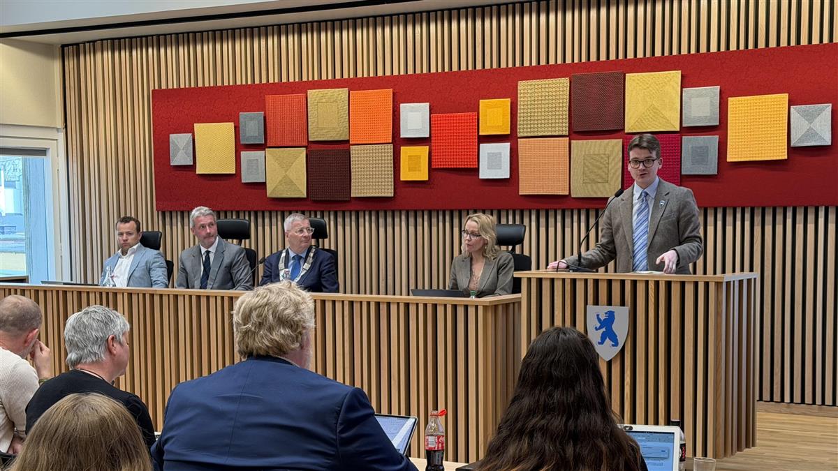 Simen Murud (H), leder for hovedutvalg for opplæring, holdt innlegg da saken ble behandlet av fylkestinget.