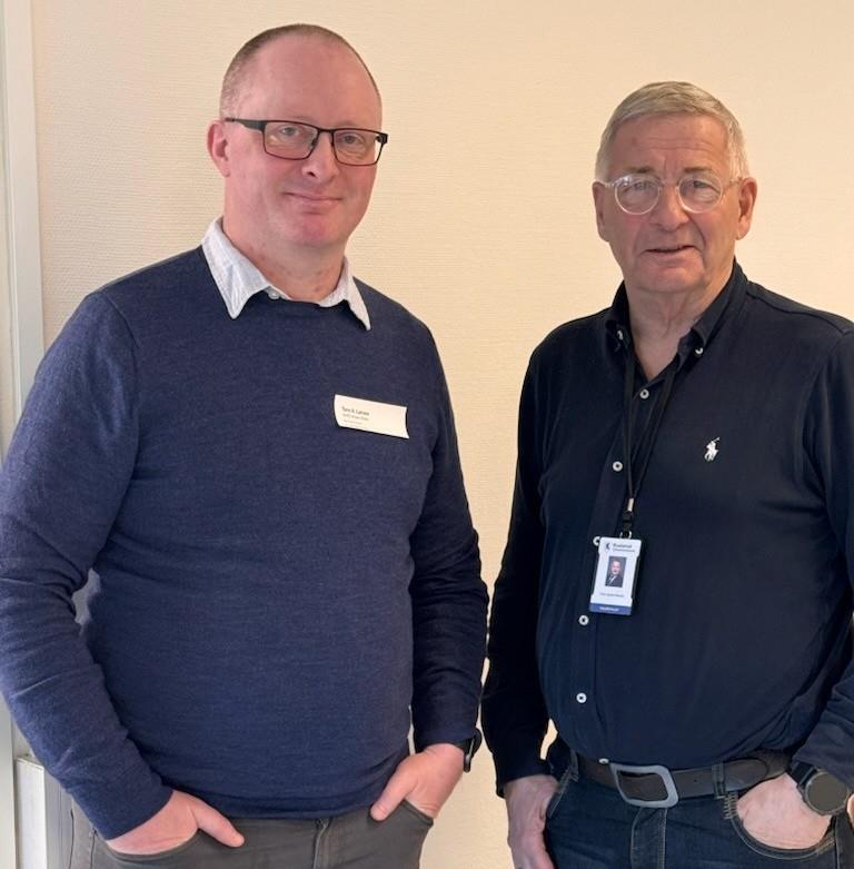Et godt møte. Fra v. Tore Larsen i NHO og Tore Opdal Hansen, fylkesordfører.