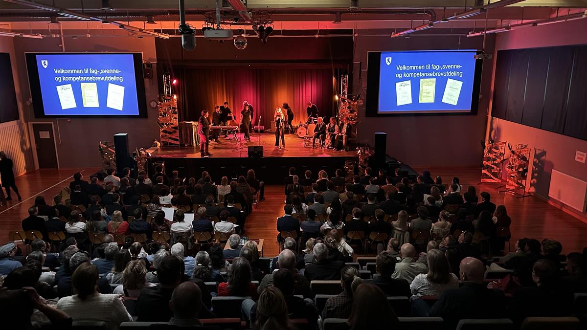 Seremonien ble ledet av Knut Erik Hovde fra fag- og yrkesopplæringsseksjonen i fylkeskommunen. Underholdningen stod elever fra St. Hallvard videregående skole for.