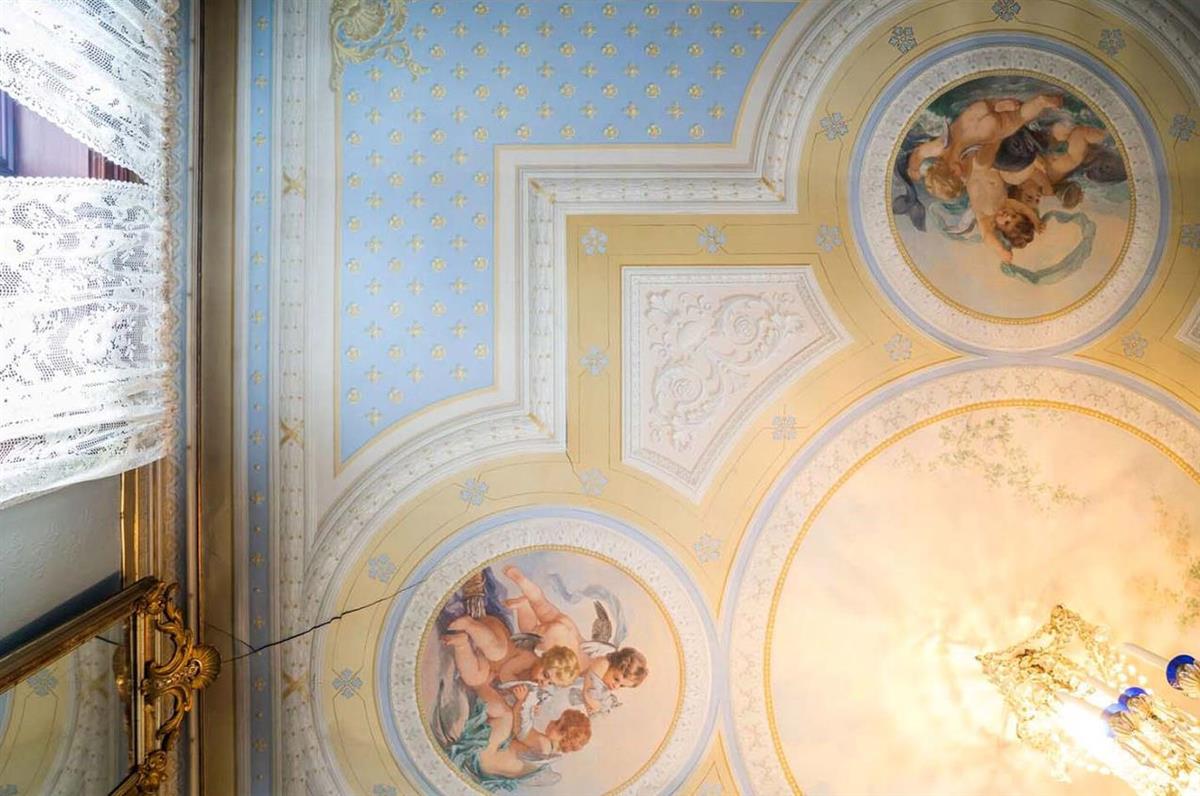 Wilhelm Kroghs dekorasjoner i himlingene i tre stuer holder et høyt kvalitetsnivå.