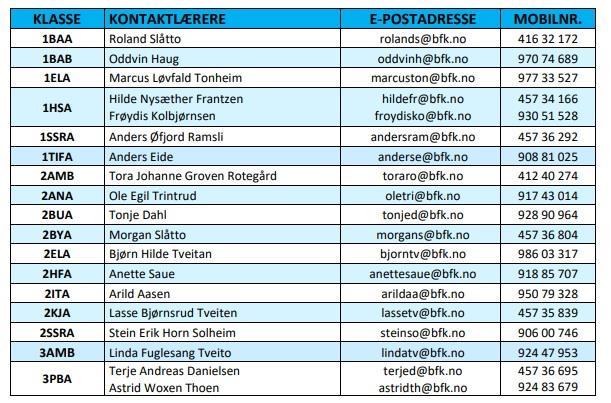 1. Dere melder dere på ved å sende en e-post eller SMS til kontaktlærer. (Se kontaktinfo under.) FRIST: Onsdag 11.februar.