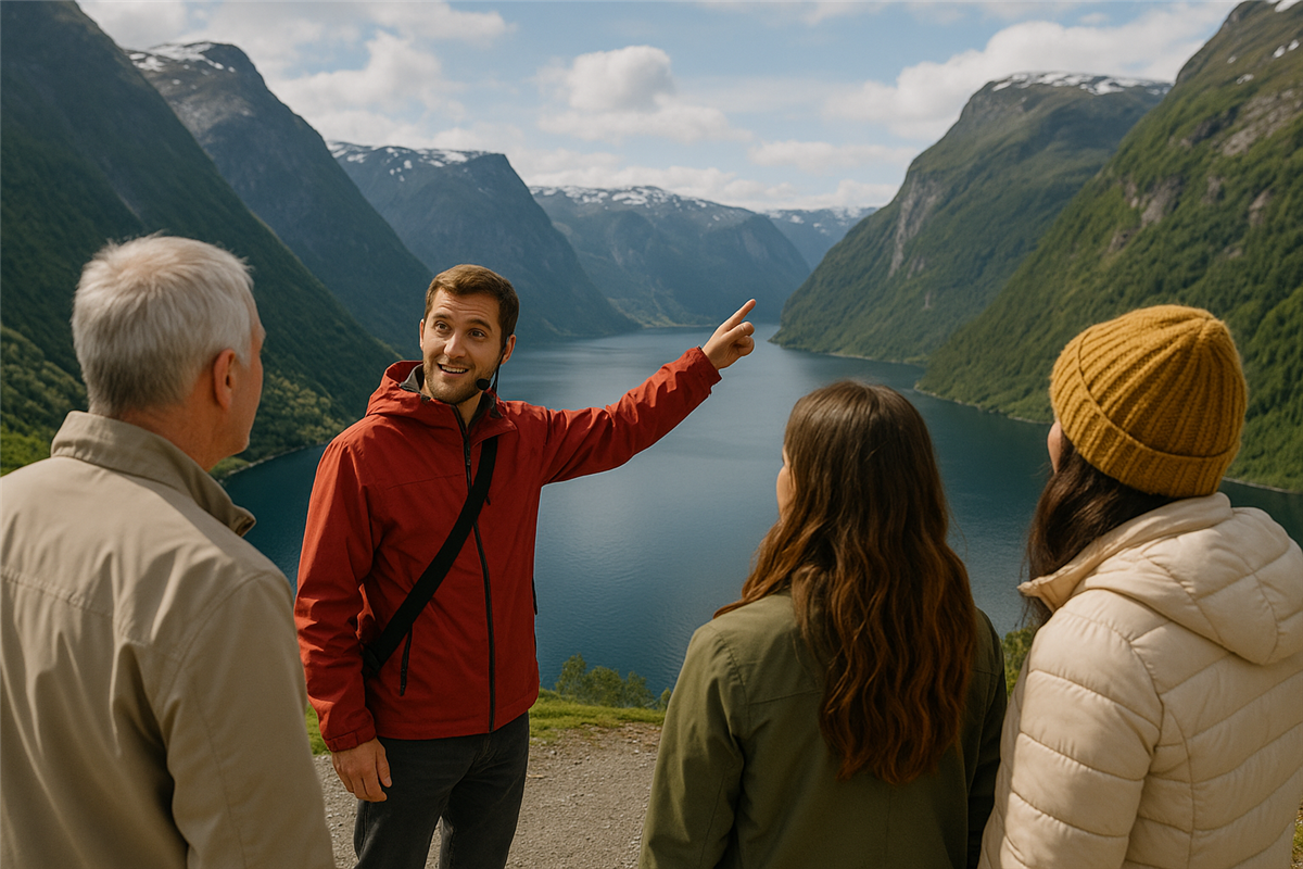 Reiseliv og turisme er en naturlig arbeidsplass for mange med fagbrev i SSR. Bransjen er i kontinuerlig utvikling og opplevelsespakker blir stadig mer populært. Bildet er KI-generert