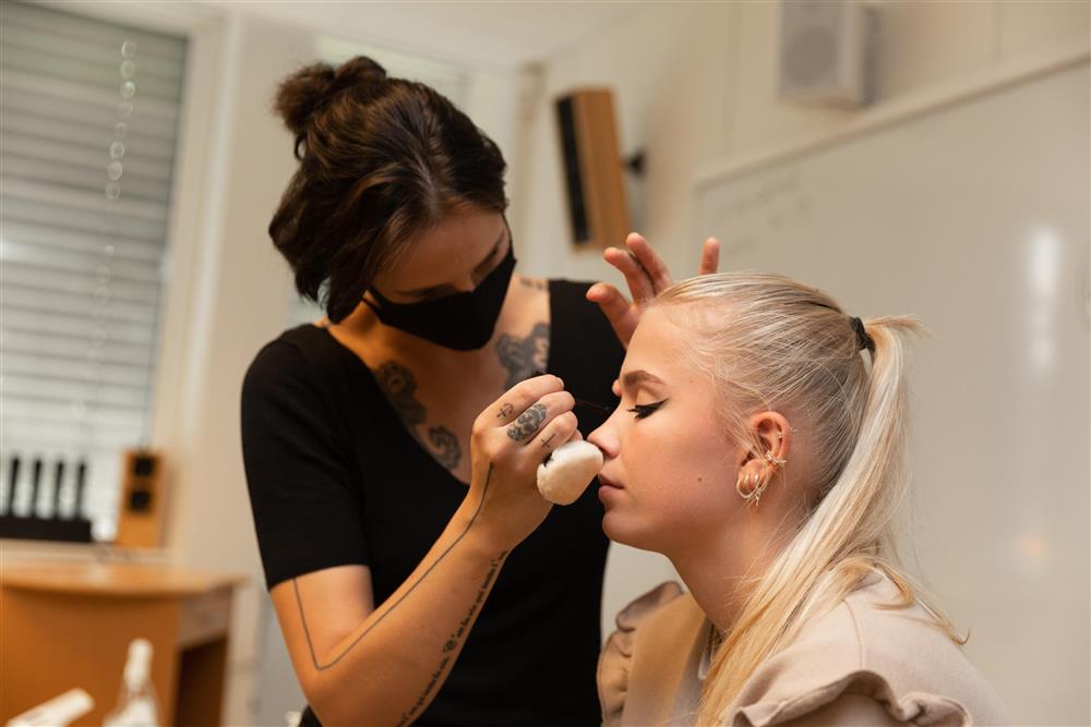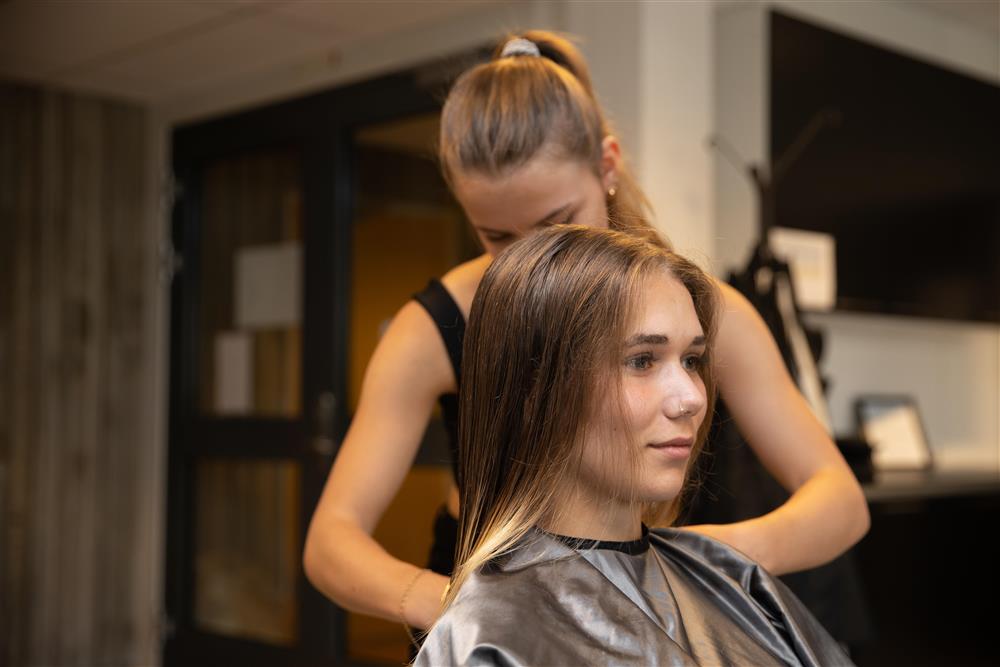 I frisørsalongen øver de på klipp, vask og farge med hverandre som hårmodeller. Neppe har noe annet utdanningsprogram så freshe og velstelte elever som vi! I tillegg holder salongen åpen for eksterne kunder noen dager i uka. Kundedagene gir elevene våre svært variert og verdifull praksiserfaring som ligger tett opp mot arbeidslivet.