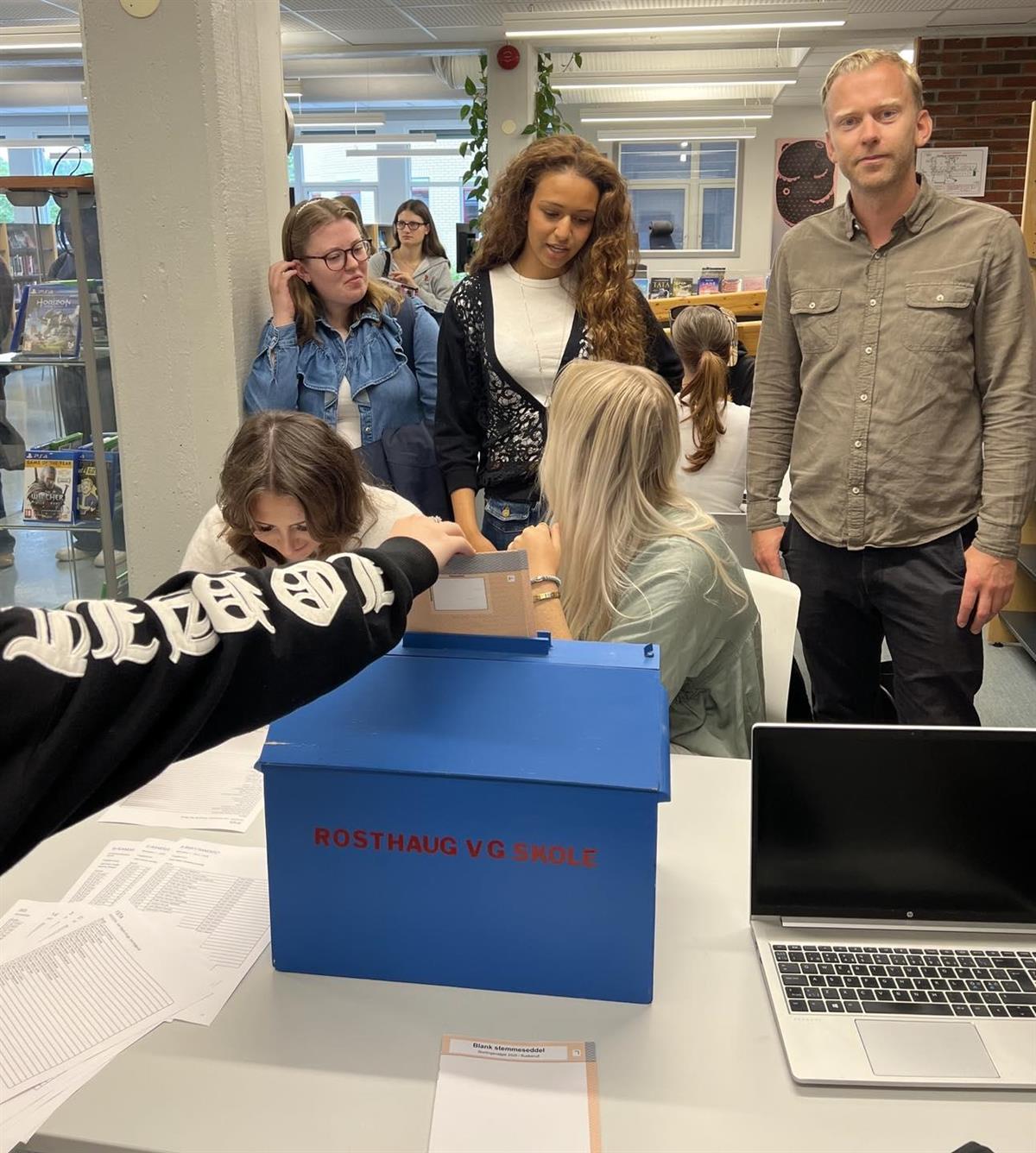 Elever fra programfaget politikk og menneskerettigheter arrangerte skolevalget, godt veiledet av lærer Erik Helgerud.