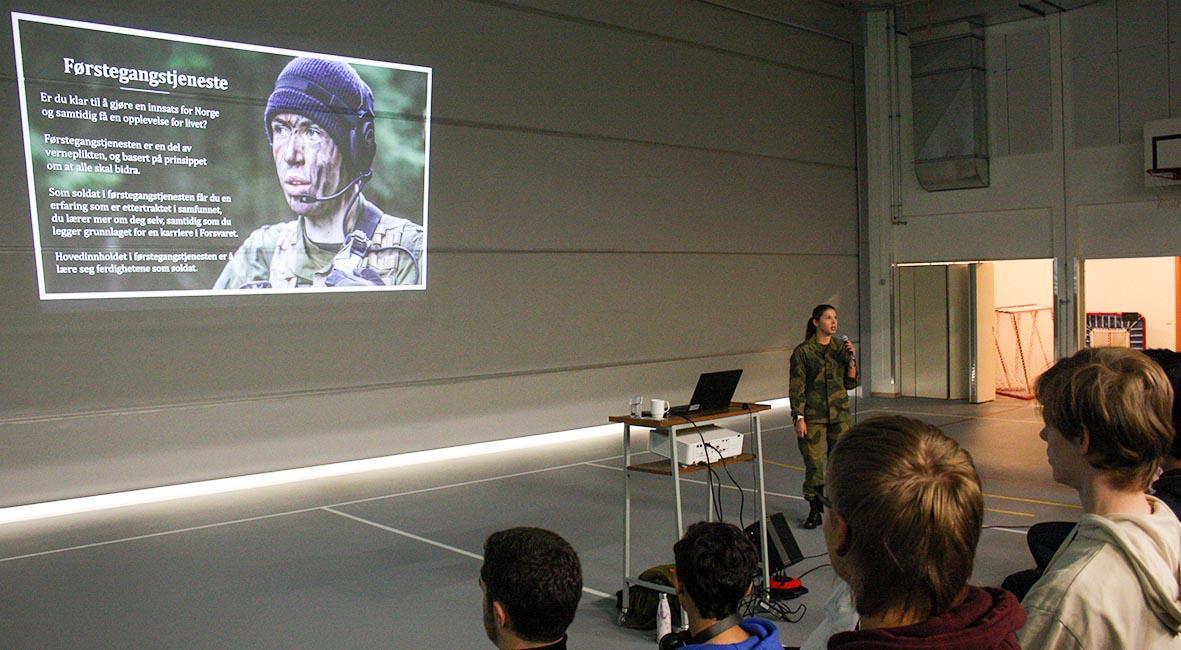 Vg2-elevene fikk møte Forsvaret på skolen i dag.