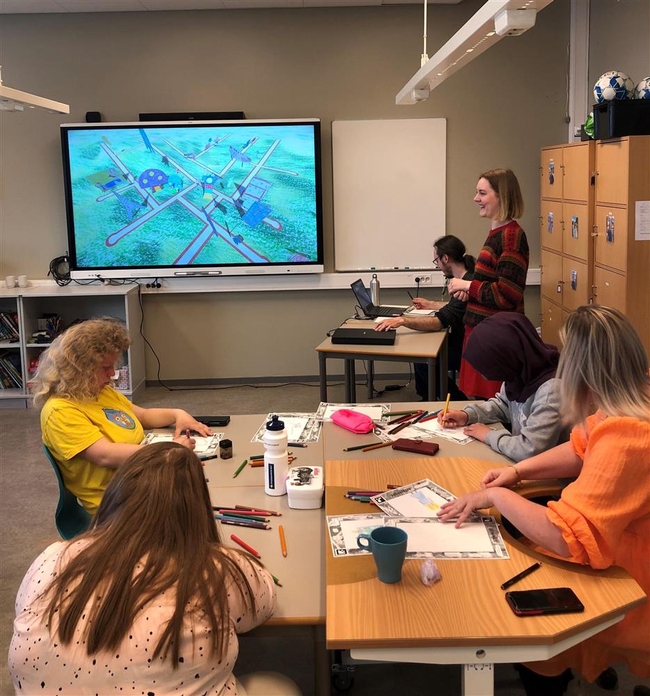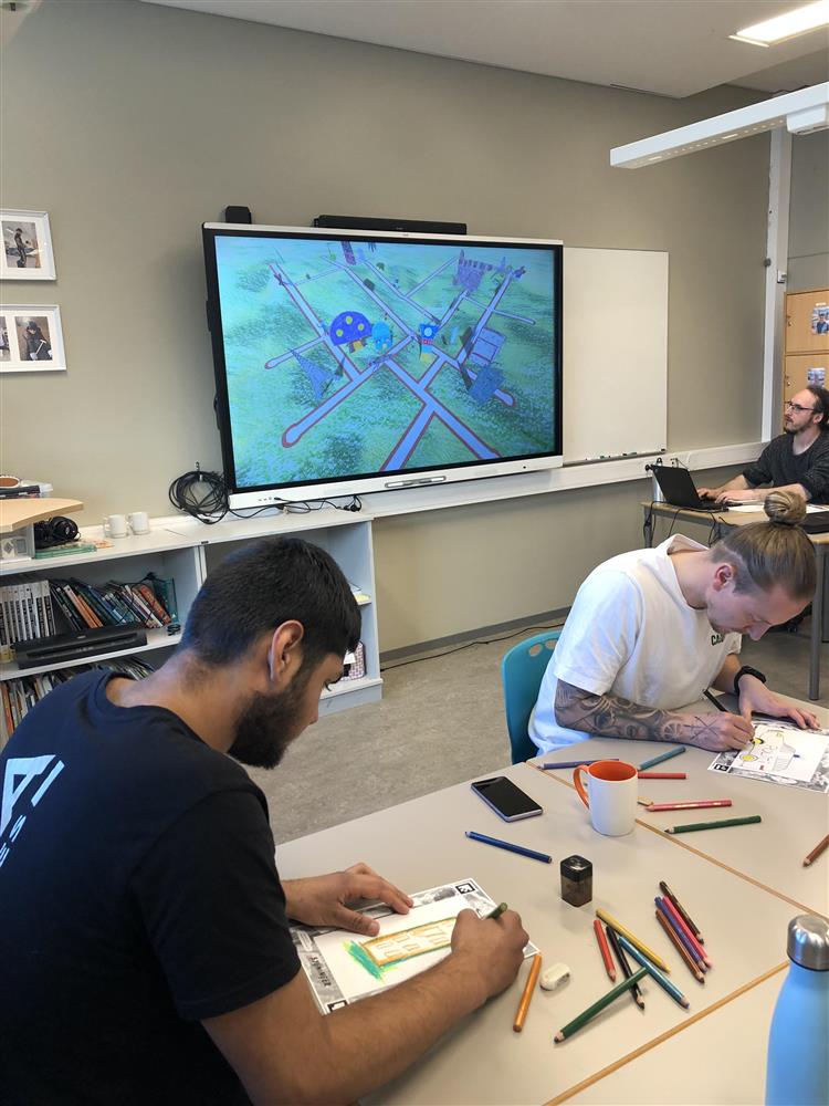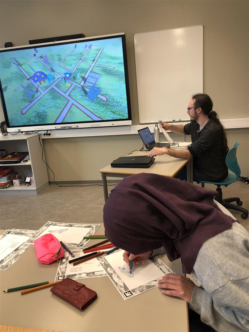 Elevene tegnet i fellesskap, og hver gang noen var ferdig med en tegning, ble den scannet inn, og flyttet inn i et større bilde på en storskjerm, hvor den fikk "liv", og kunne bevege seg alt etter hvilken type ark den var tegnet på. Gradvis ble det flere og flere kreative trær, karakterer og kjøretøy som beveget seg rundt i landskapet. Det er ingen tvil om at dette var en vellykket tegneøkt som satte fantasien i sving.