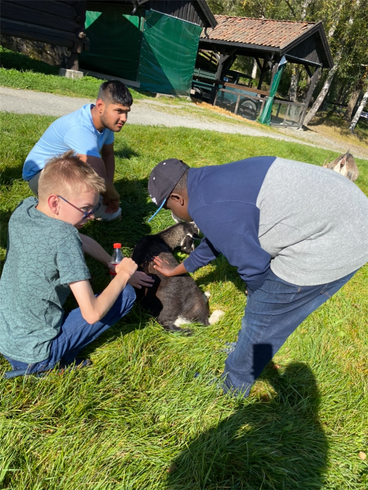 Elevene på avdeling for tilrettelagt opplæring (TO) har den siste tiden lært om dyreomsorg og dyrevelferd. Som en avslutning på temaet dro de til Blåfargeverket, som har en bondegård med mange dyr, gamle gårdsbygninger og arbeidsredskaper som ble brukt i gamle dager. På bondegården fikk elevene ta nærmere i øyesyn griser, kalver, hester, høner og geiter. Noen av de mest populære "innbyggerne" på gården er kaninene, som det var mulighet for å holde og klappe. Elevene lot ikke denne muligheten gå fra seg.