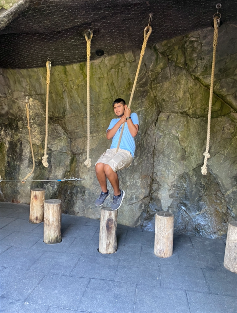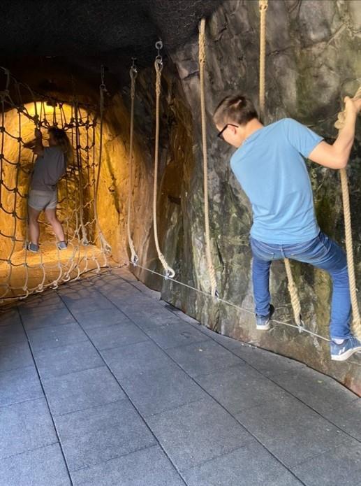 Det var også mulighet for andre aktiviteter på Blåfargeverket. Elevene fikk utfordret balanse og smidighet i en spennende hule med en rundløype, hvor de kunne prøve seg i ulike elementer laget i tre og tau. Hulen er innredet sammen med klatreparken Høyt & Lavt.. «Dogans ladder», «Fleas jump» og «Balance rope» var noen av aktivitetene som ble utprøvd med stor entusiasme.