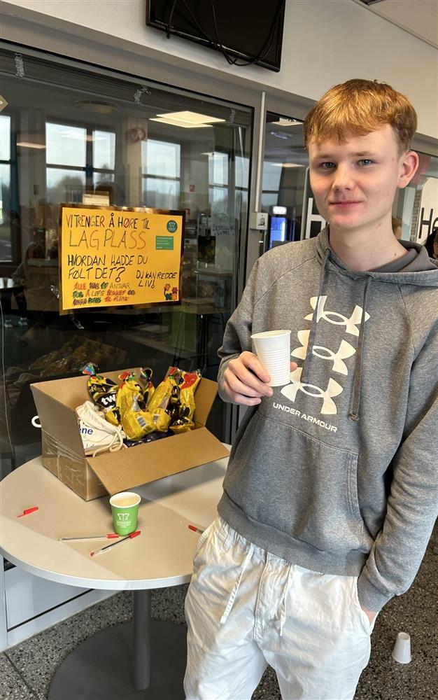 Elevene i 2HEA hadde stand hvor de hadde effekter som reflekser, stressballer og små brosjyrer med budskap om psykisk helse. De delte ut boller og saft og twist, og mange stakk innom. Det var også en konkurranse man kunne delta i, som ble vunnet av Stine Gulsrud i 3STD.