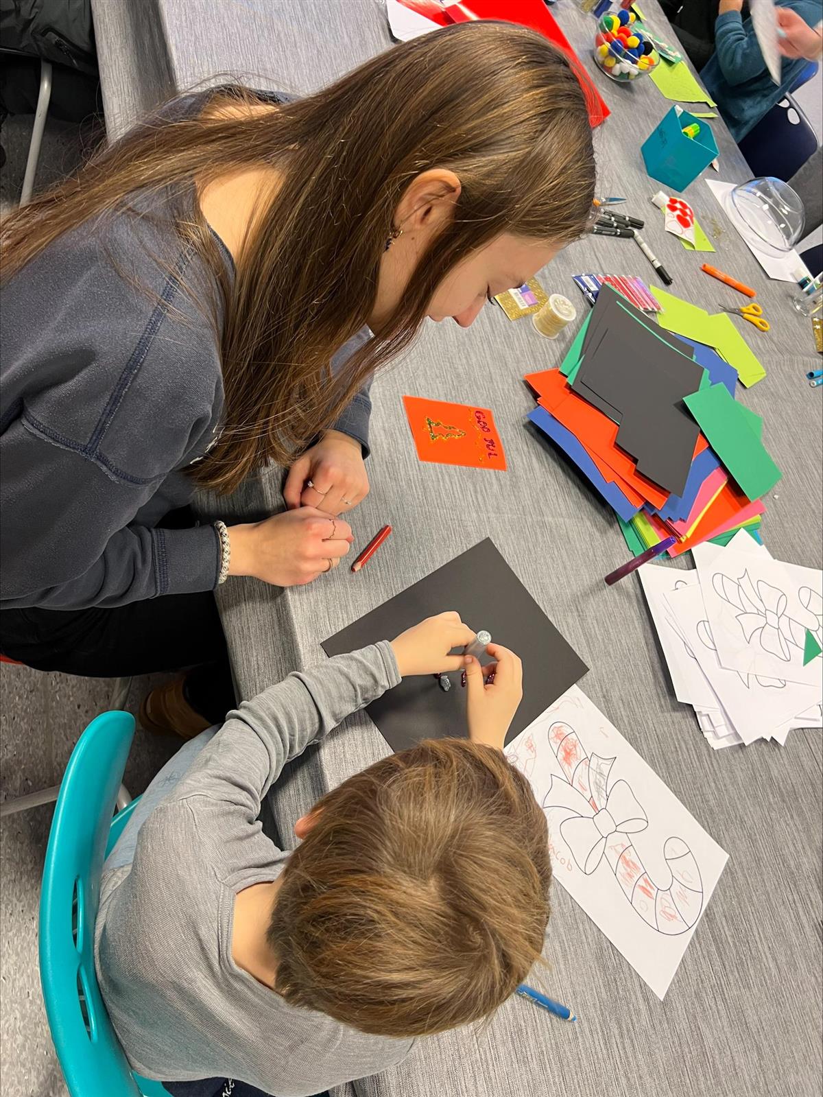 9 elever fra BUA- klassen arrangerte juleverksted for å knytte kontakt og få gode samspillsituasjoner med de såkalte Maxi-barna. Det ble produsert julekort, juletegninger, snømenn og det foregikk mye lek innimellom all kreativitet.