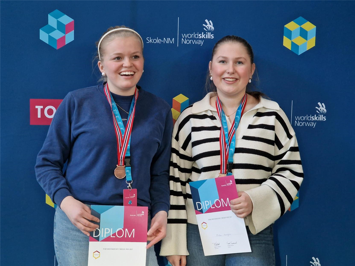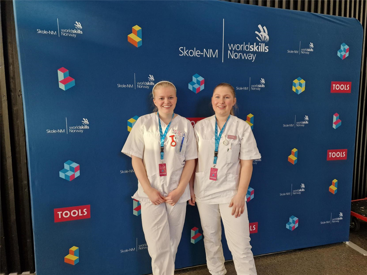 Frida Haugen og Vilde Marie Aabel fra Vg2 Helsefagarbeider deltok onsdag 29.03 på skole-NM i helsearbeiderfaget i Stjørdal. De kvalifiserte seg til konkurransen igjennom å vinne fylkesmesterskapet som ble arrangert ved Hønefoss videregående skole i februar.
