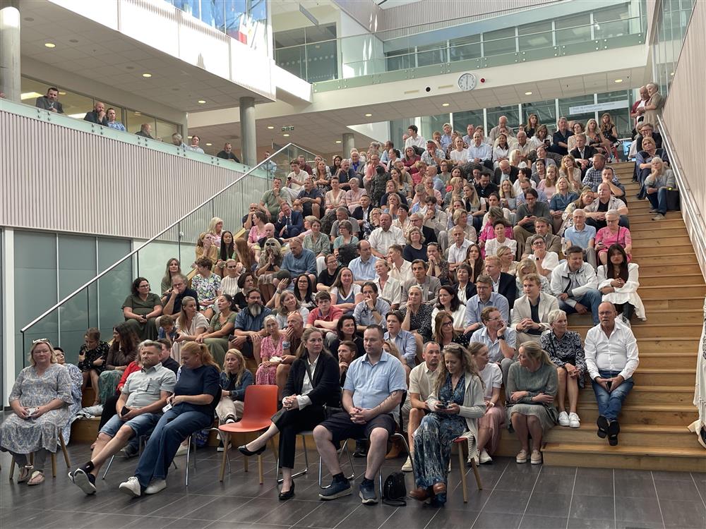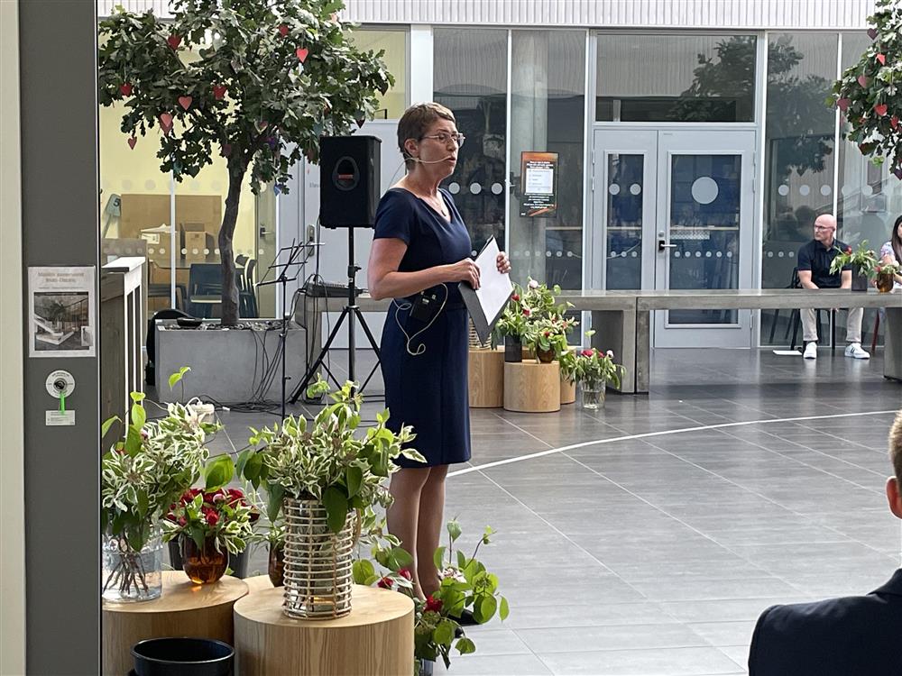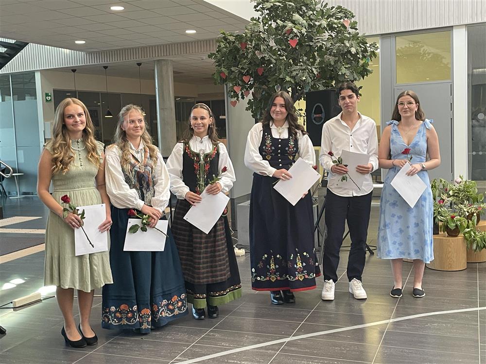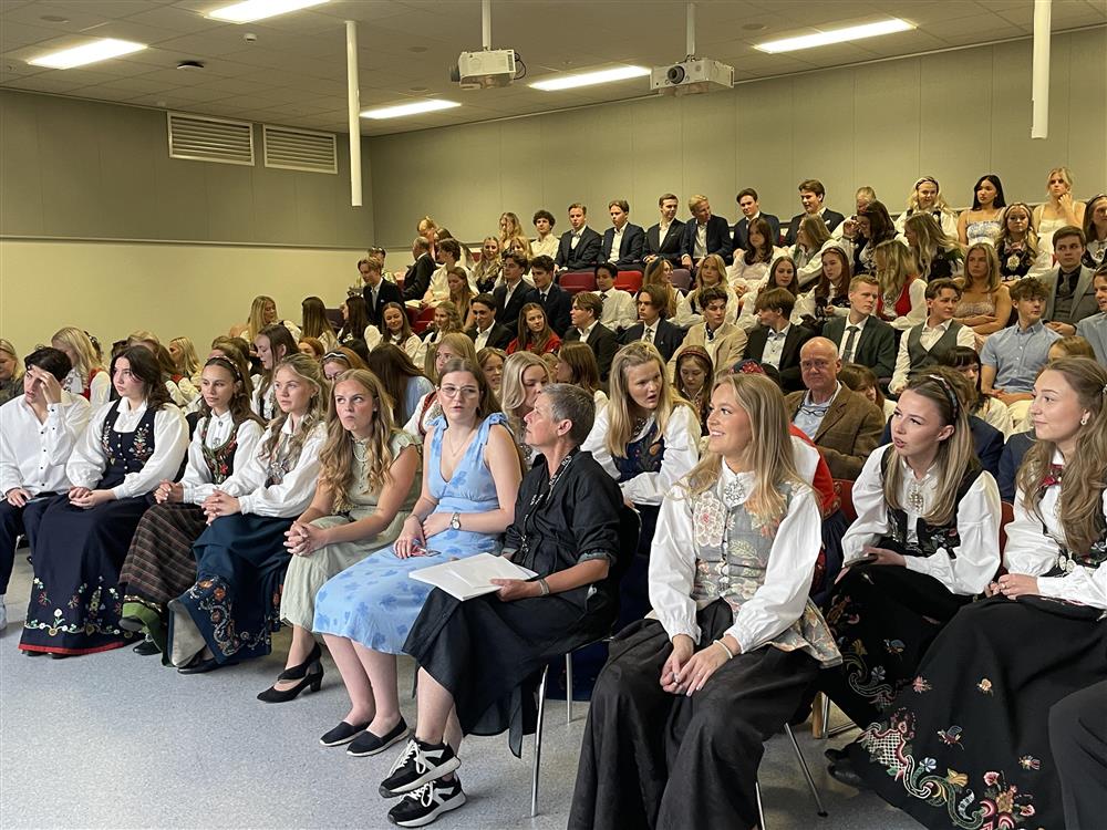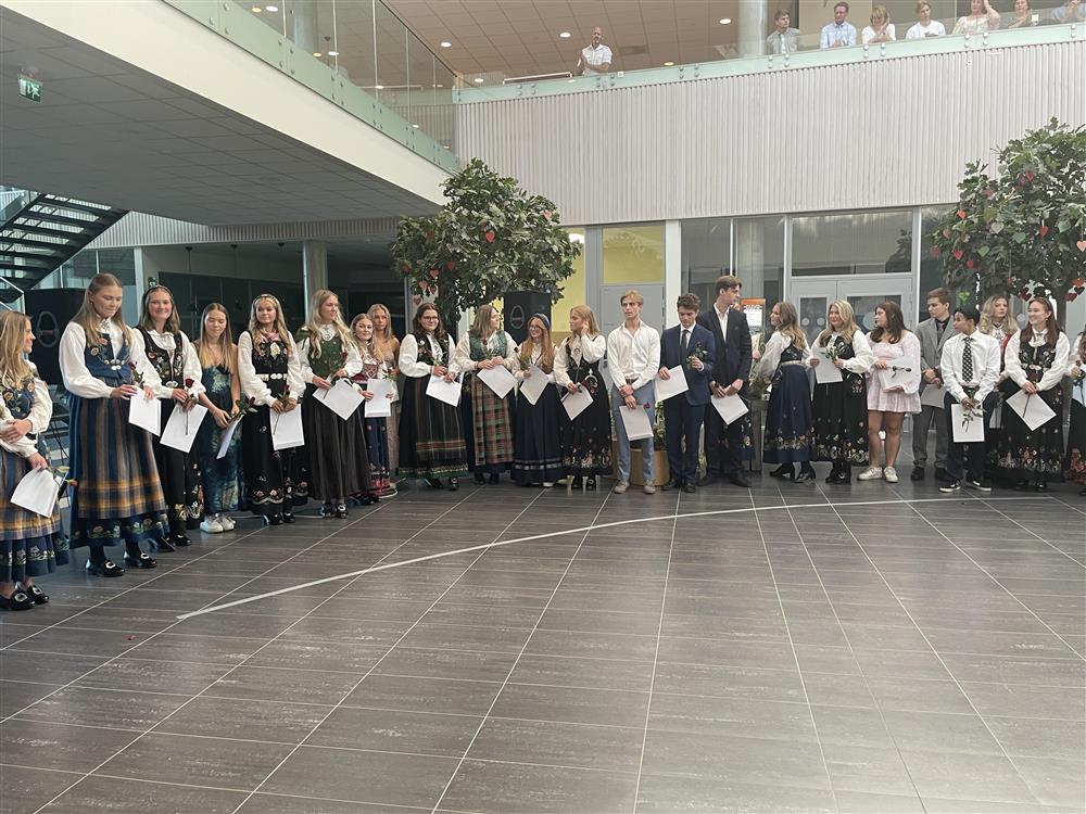 i skolens lokaler som for anledningen var blomsterpyntet av elevene på Vg1 FBIE (Frisør, blomst, interiør og eksponeringsdesign)
