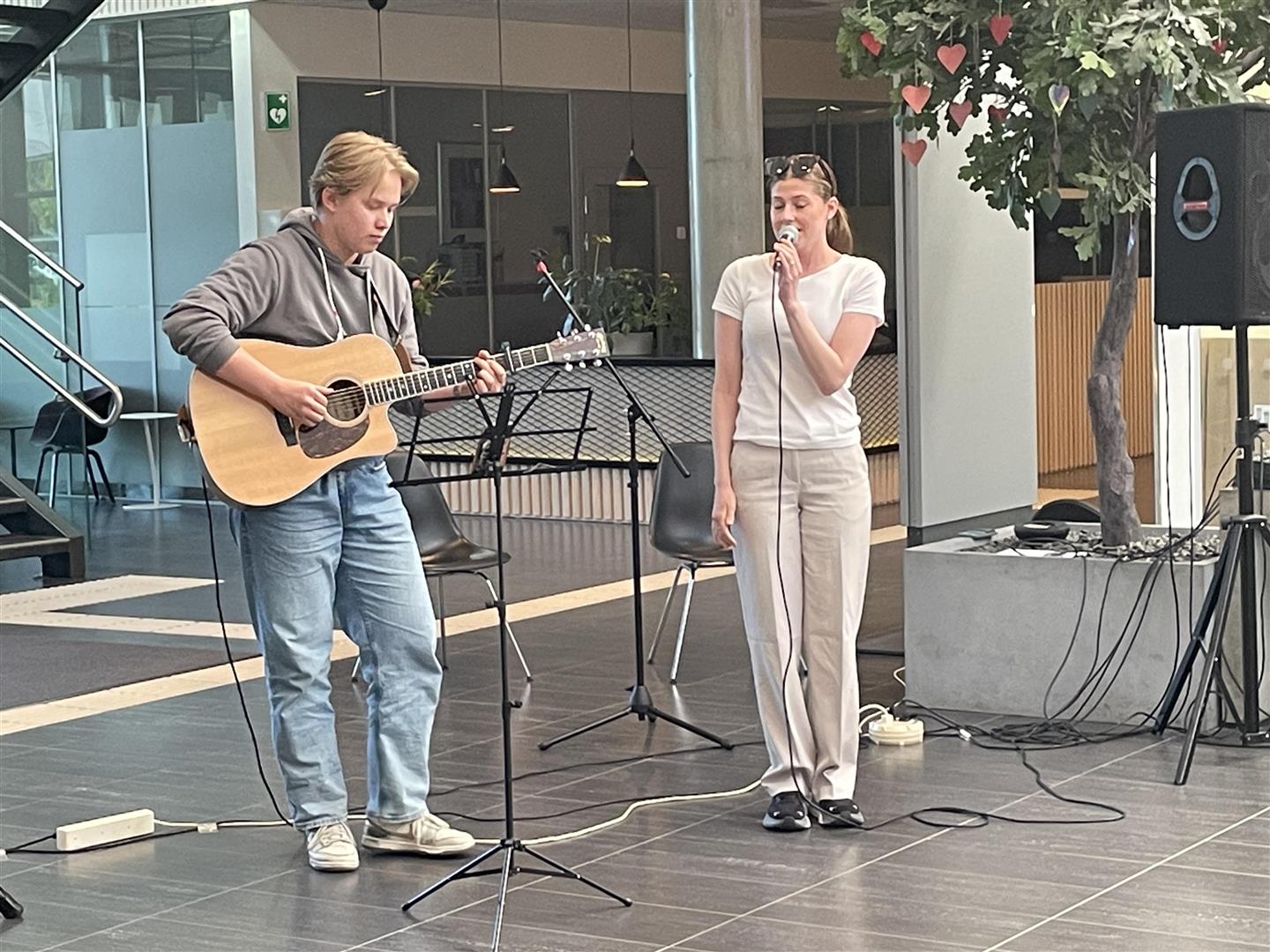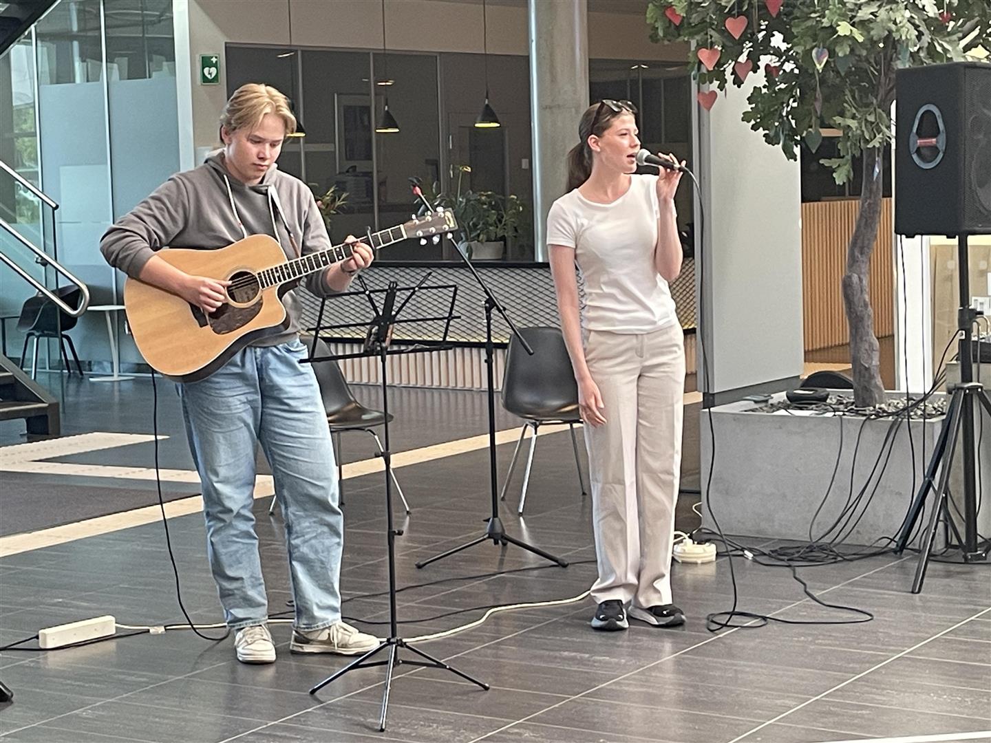 Vi fikk høre nydelig sang og gitarspill i to musikalske innslag av Maren Cecilie Grønvold og Eirik Prøsch Vik, fra henholdsvik Vg2 og Vg1 på Musikklinja på Ringerike vg skole.