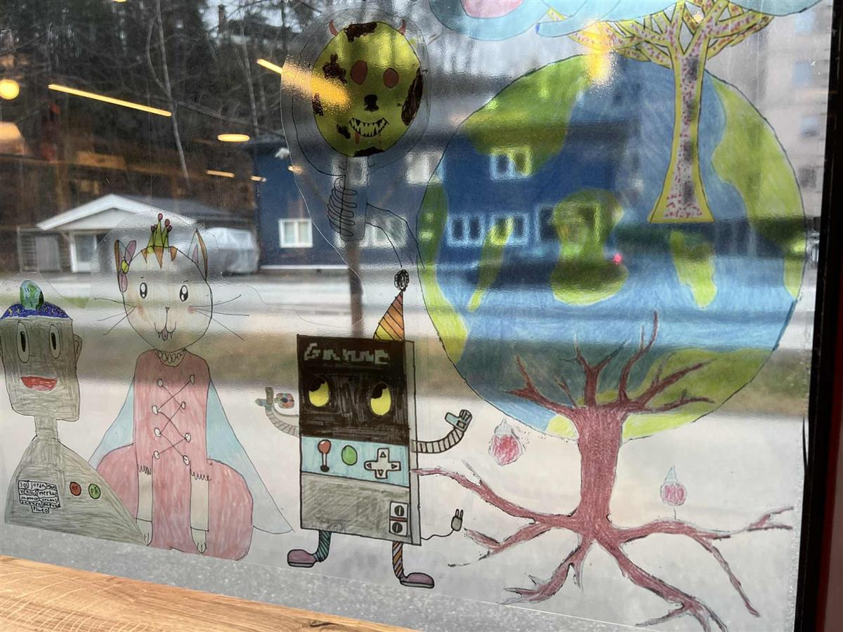 Et annet høydepunkt var mottakelsen av over 100 tegninger fra barn og unge i Hole kommune. Disse ble bearbeidet digitalt og satt sammen til collager som nå pryder både vegger og vinduer i biblioteket. Elevene fikk her brukt sin kompetanse i Photoshop til fulle.