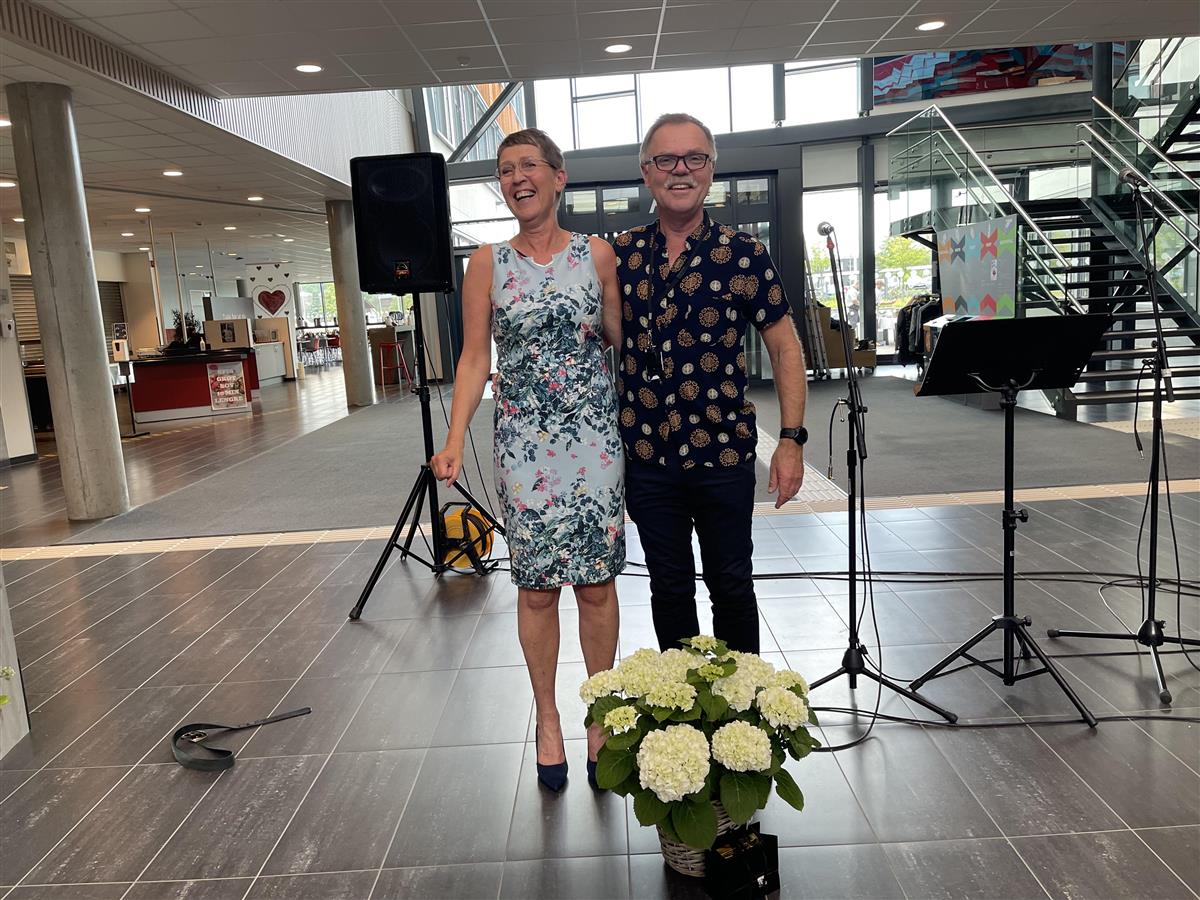 Den siste som ble takket av var tilretteleggingsleder Knut Olav Andersen som velger å gå over i pensjonistenes rekker alt for tidlig. Rektor takket han for den meget solide jobben han har gjort siden han kom til Hønefoss videregående skole i 2010. Før det kunne hun opplyse at de to av jobbet sammen nå i sammenhengende 35 år, de første årene på Rosthaug videregående skole, de siste 13 på vår skole. Lykke til med pensjonistilværelsen og alle aktiviteter du nå får mer tid til, Knut Olav!