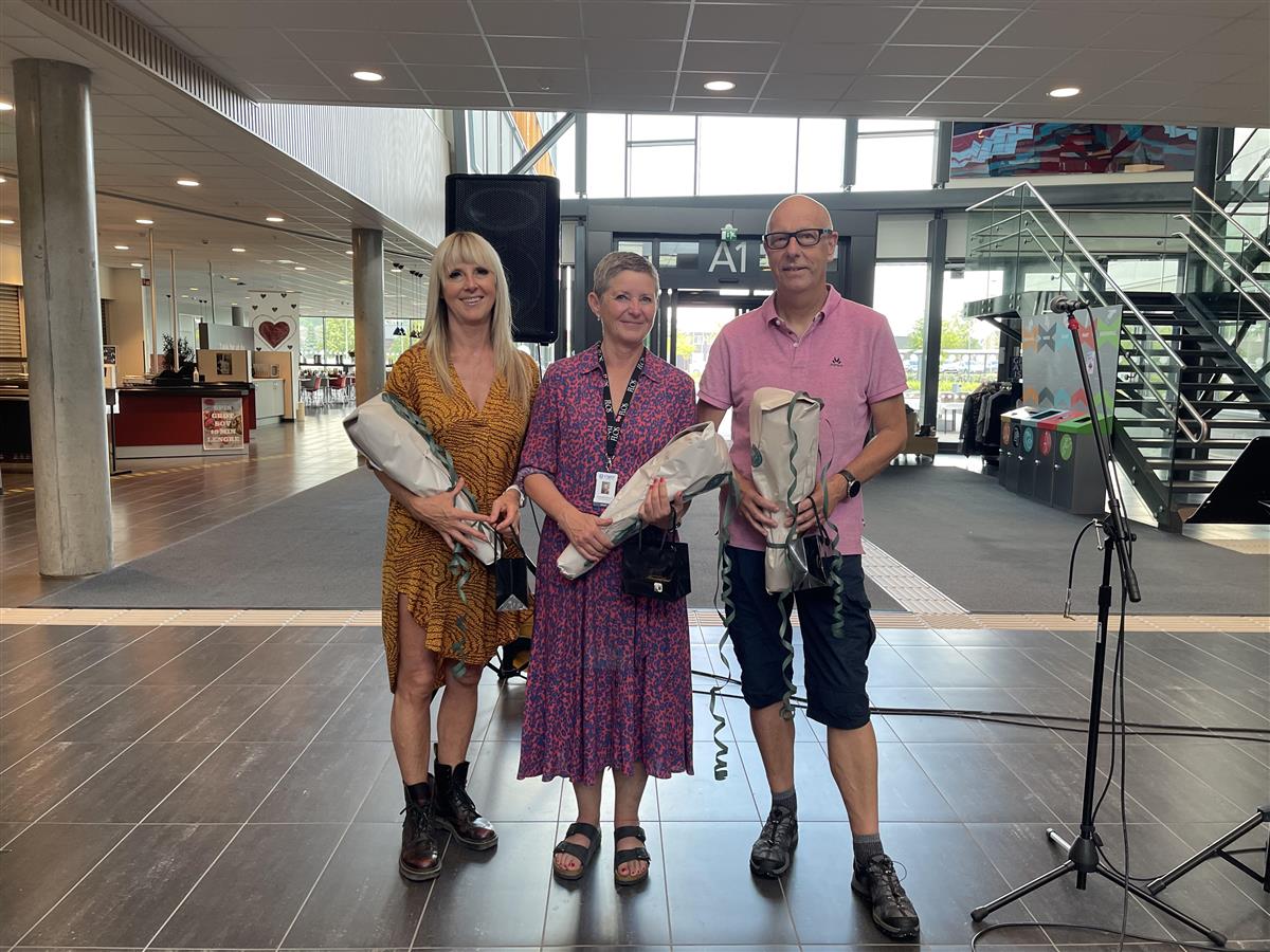 25-årslubilanter. Fra venstre: Hanne Nicolaysen, Ingrid Sørensen og Knut Thorvaldsen. Dag Frydenlund var ikke til stede.