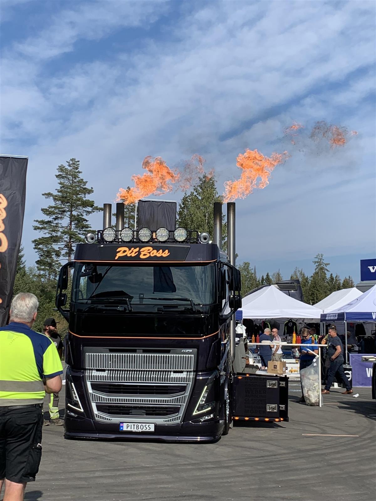 På messen fikk vi se alt fra kranbiler og anleggsmaskiner til lastebiler i både ny og gammel stil. De gamle med sin sjarm og enkle kår, de nye med en teknologi og ekstrautstyr som man bare kan drømme om. Pit Boss, den råe showtrucken på bildet under, har innebygget Webergrill, kjøleskap, komfortabel soveplass, flammekastere, lyskastere og mye mer. Den gamle BP tankbilen har helt annen sjarm å by på.