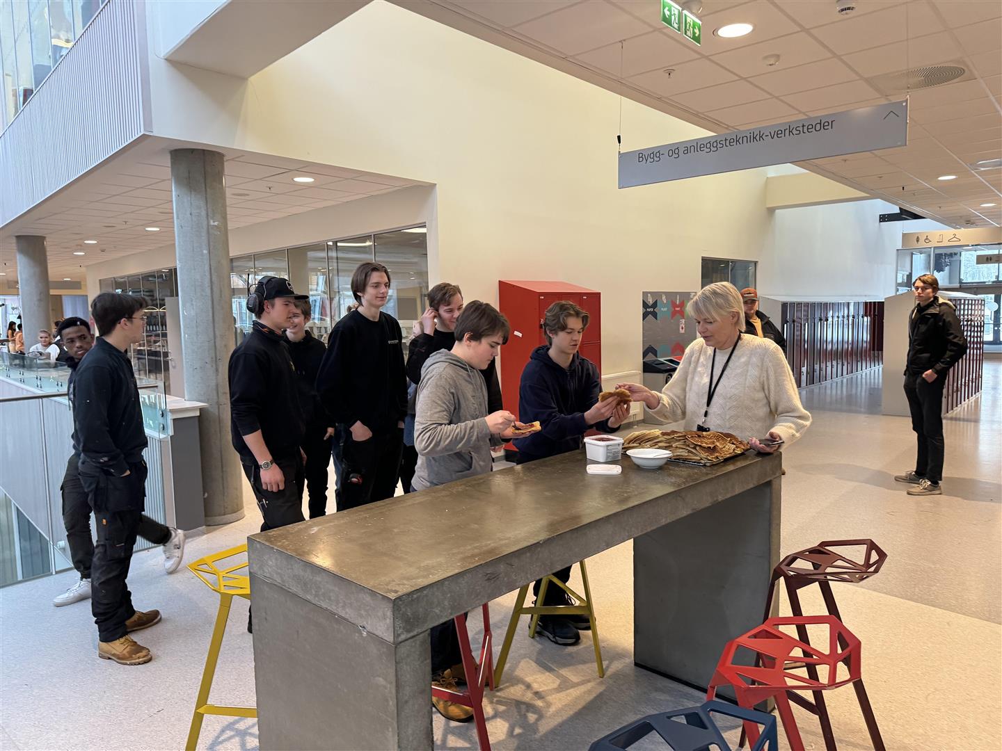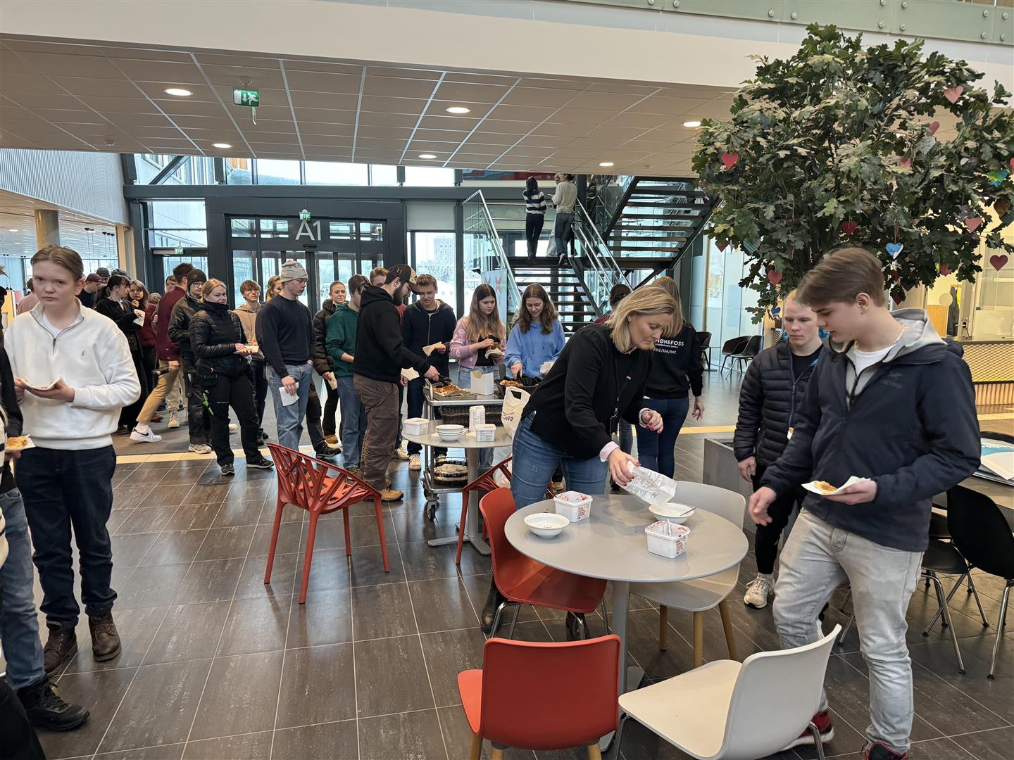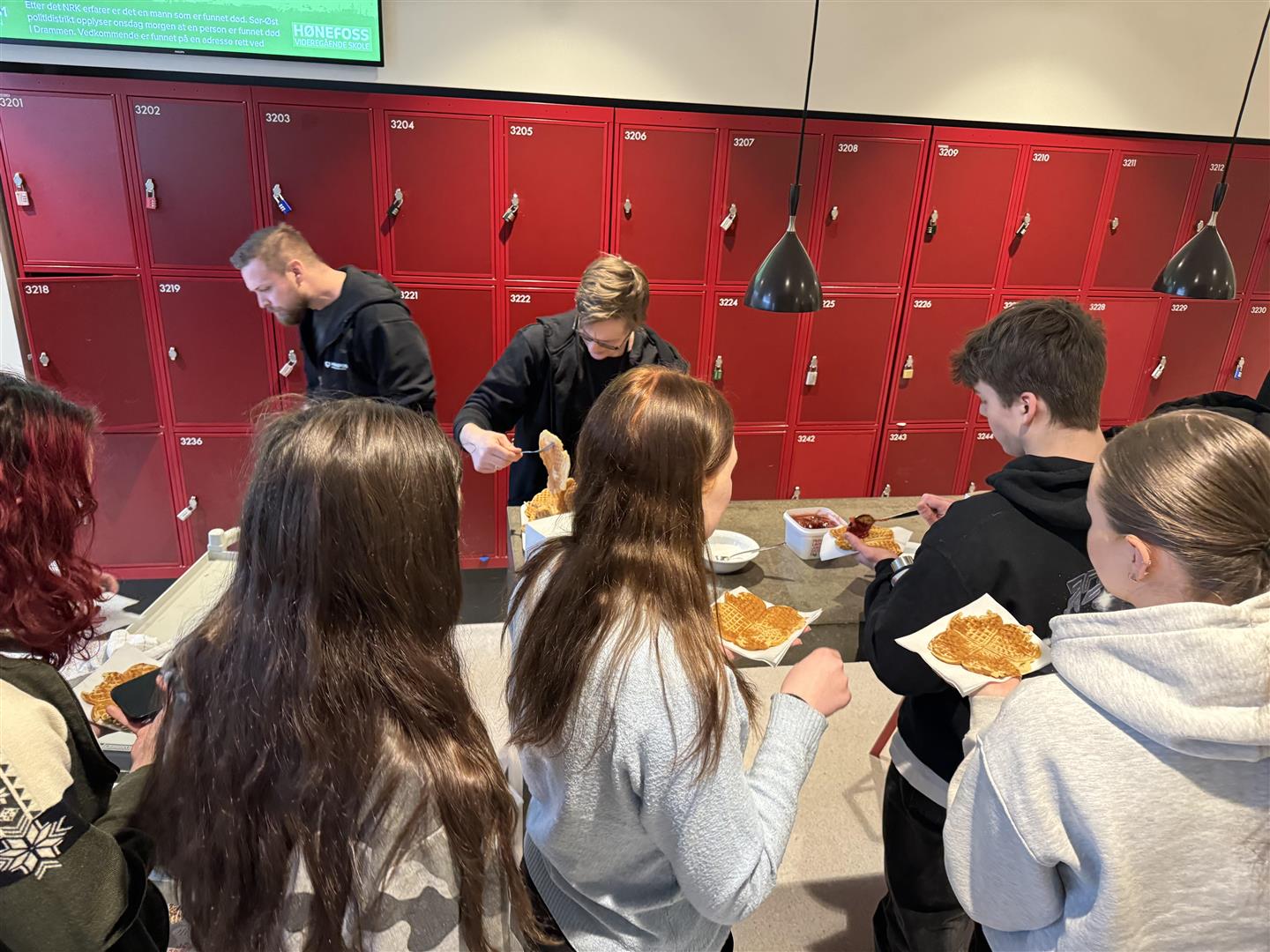 I dag blei det servert vafler til alle elever og ansatte ved skolen.