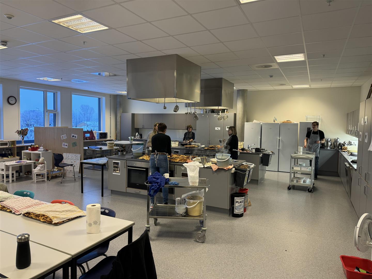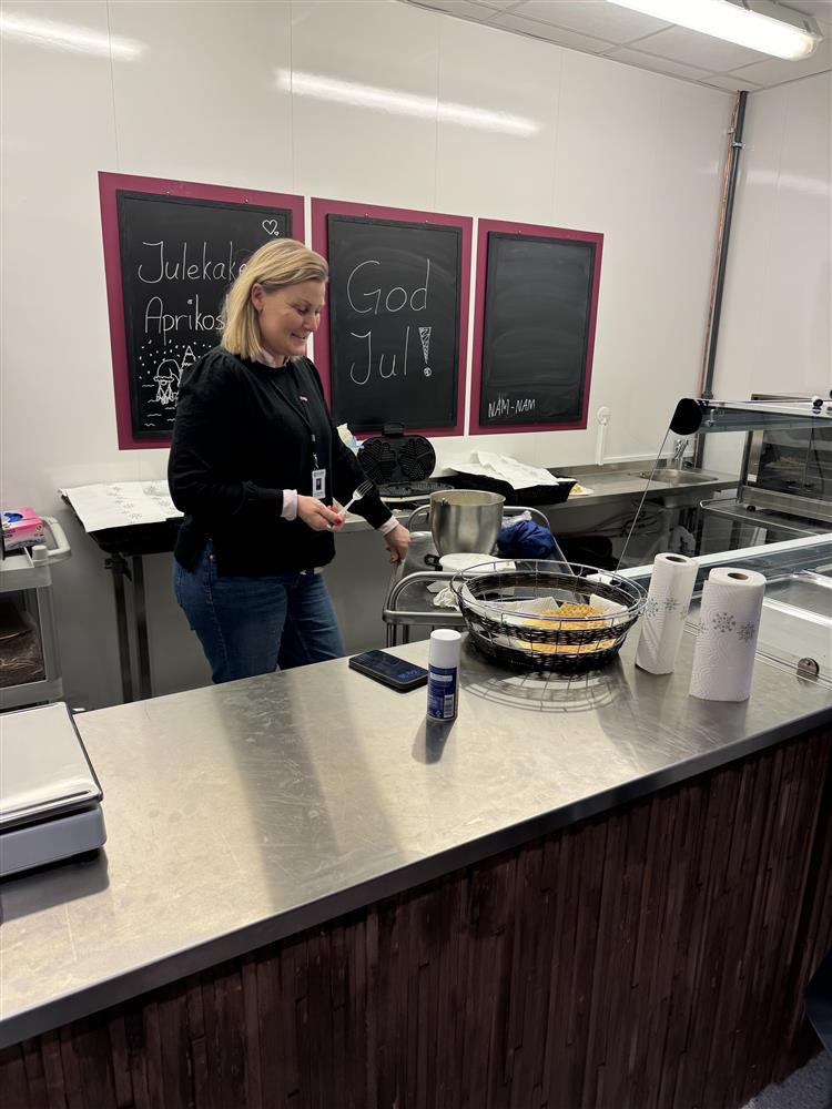 Lederne ved skolen brukte derfor dagens første arbeidstimer til å steike opp over 1000 vafler som de serverte i første friminutt. Det virka som om vaflene falt i smak :-)
