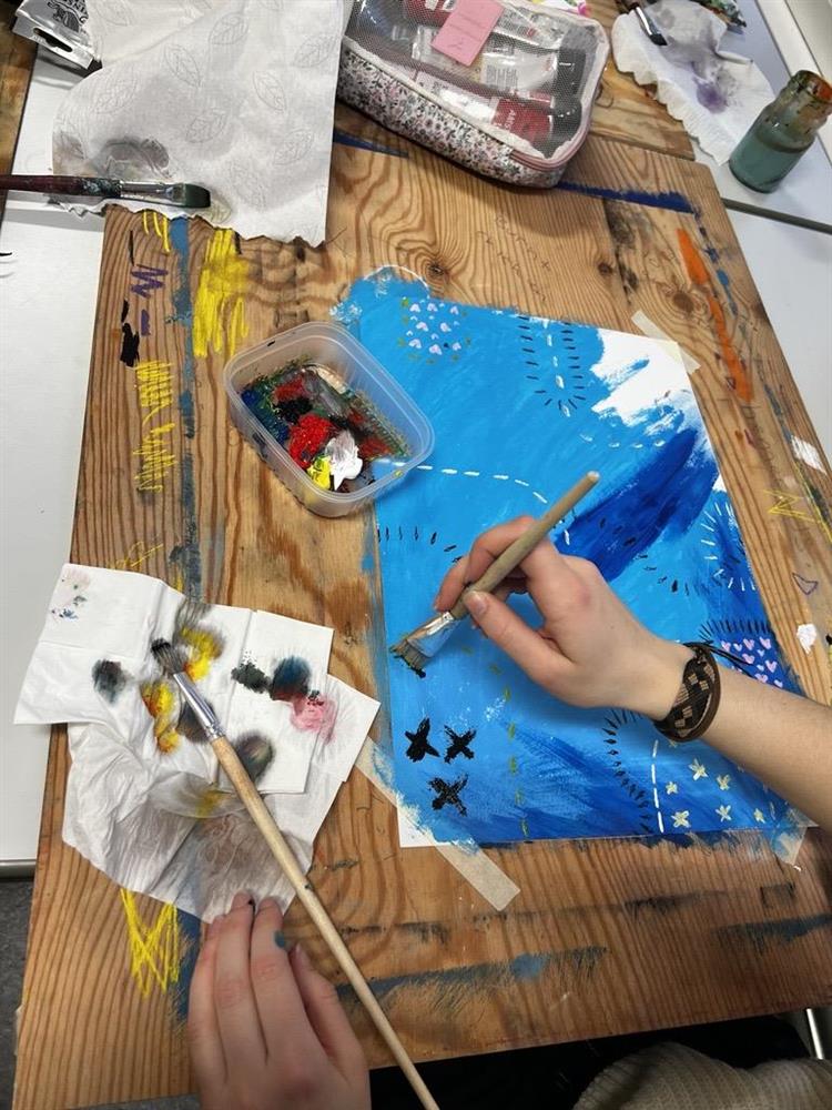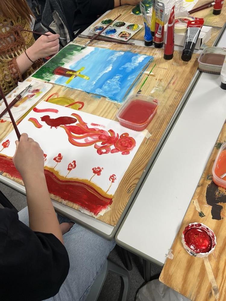 For de to elevene som ble igjen en uke til, sto 3EDA s for programmet. Disse elevene var med på dekor av vegg for Sunjordet bofelleskap.