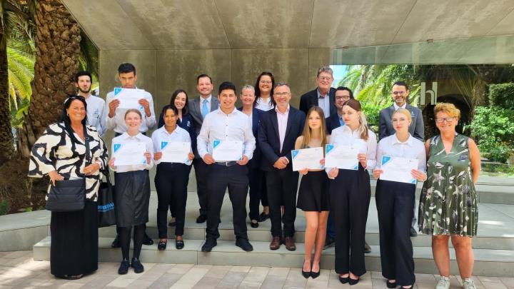Elevene på Salg, service og reiseliv er nå ferdig med sine tre praksisuker på Gran Canaria. Ved høytidelig sermoni har de fått utdelt sine diplomer.