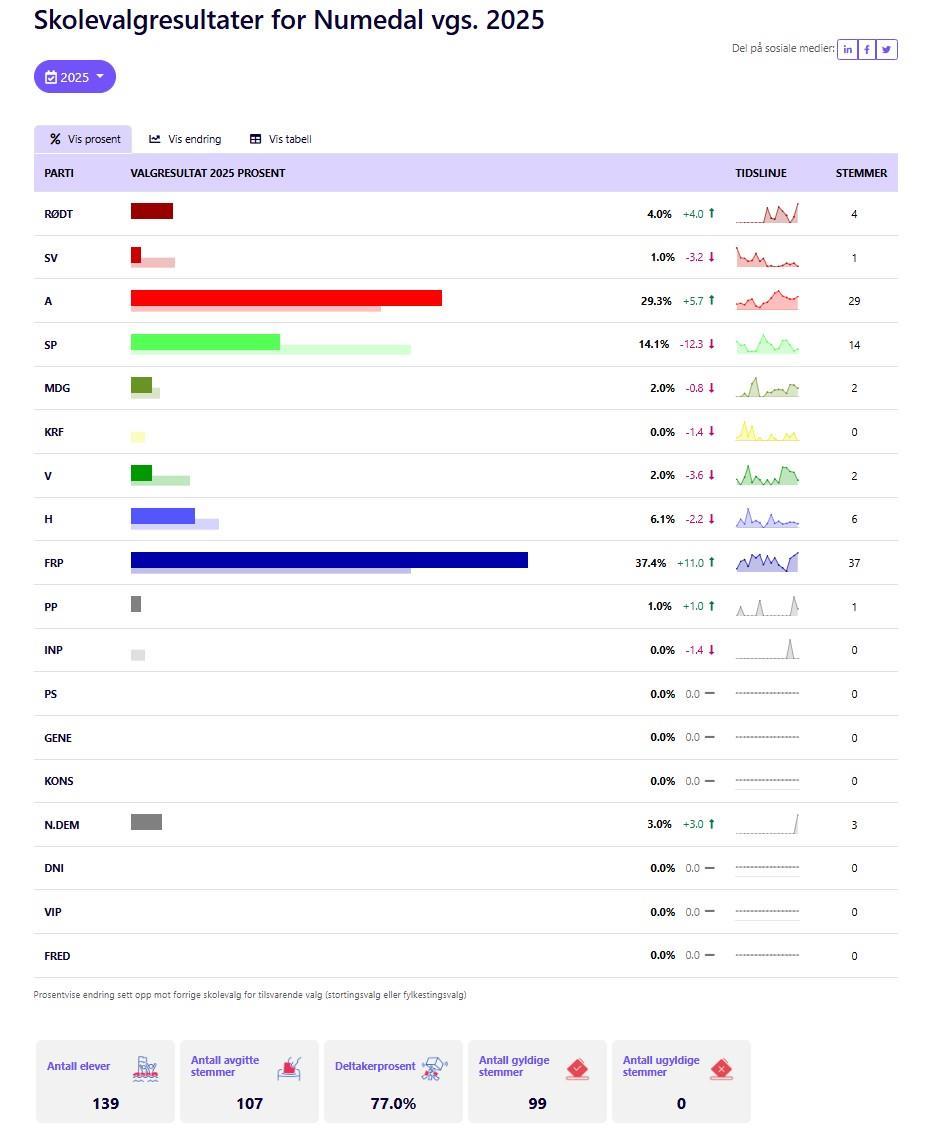 Resultat av skolevalgetHer finner du resultatet fra årets skolevalg. Publisert av Kari Auestad Tveiten Publisert 03.09.2025 14.41 Sist endret 03.09.2025 15.05