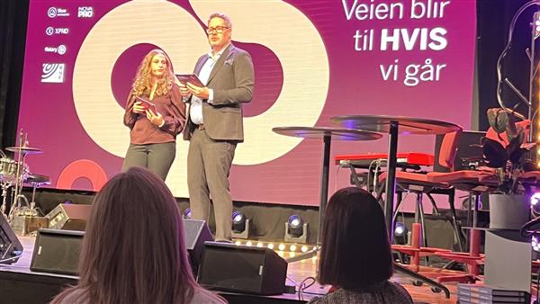 Elise fra programområdet Salg, service og reiseliv fikk æren av å åpne årets Ringerikskonferanse foran over 300 deltakere fra næringslivet i regionen.