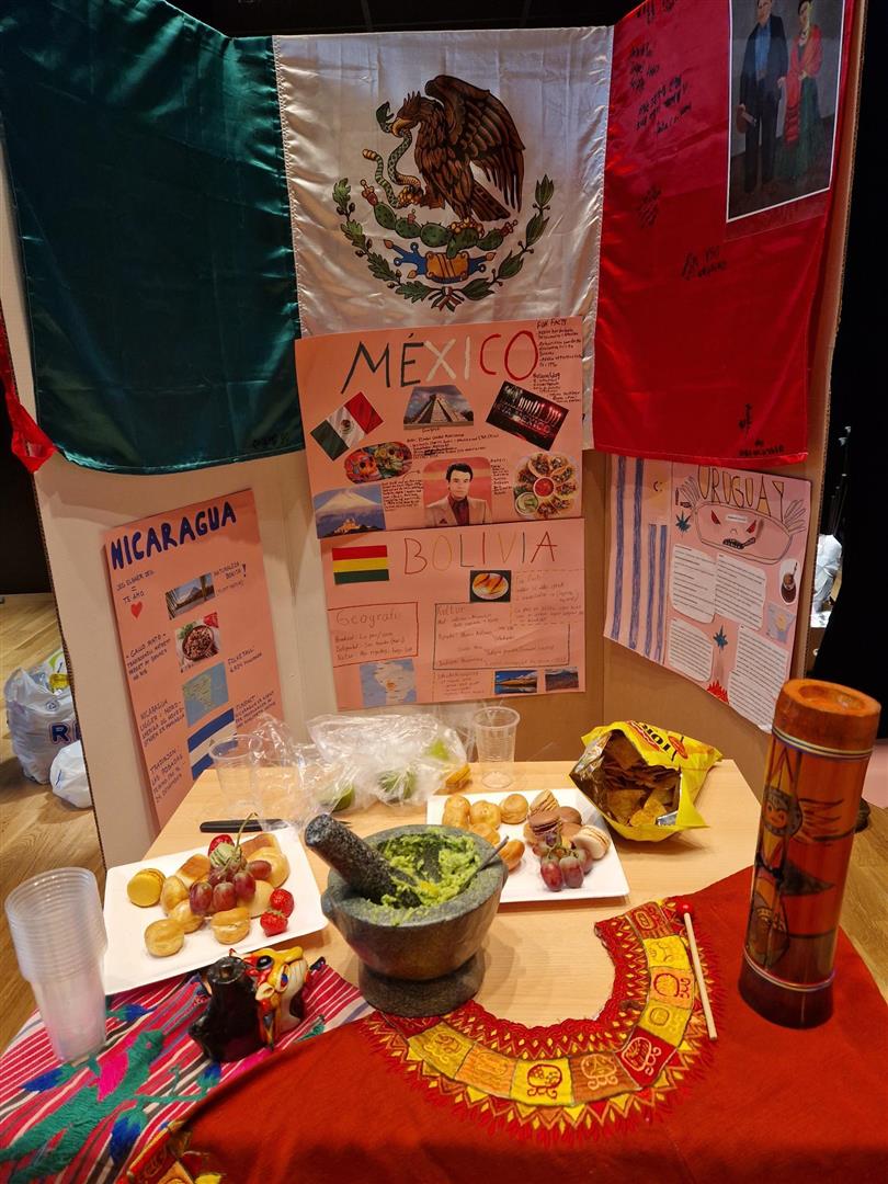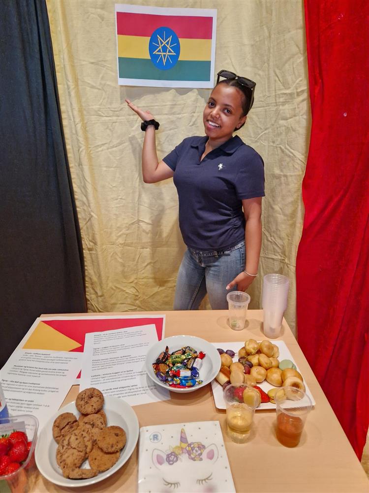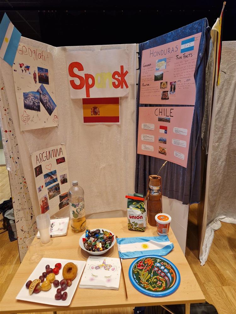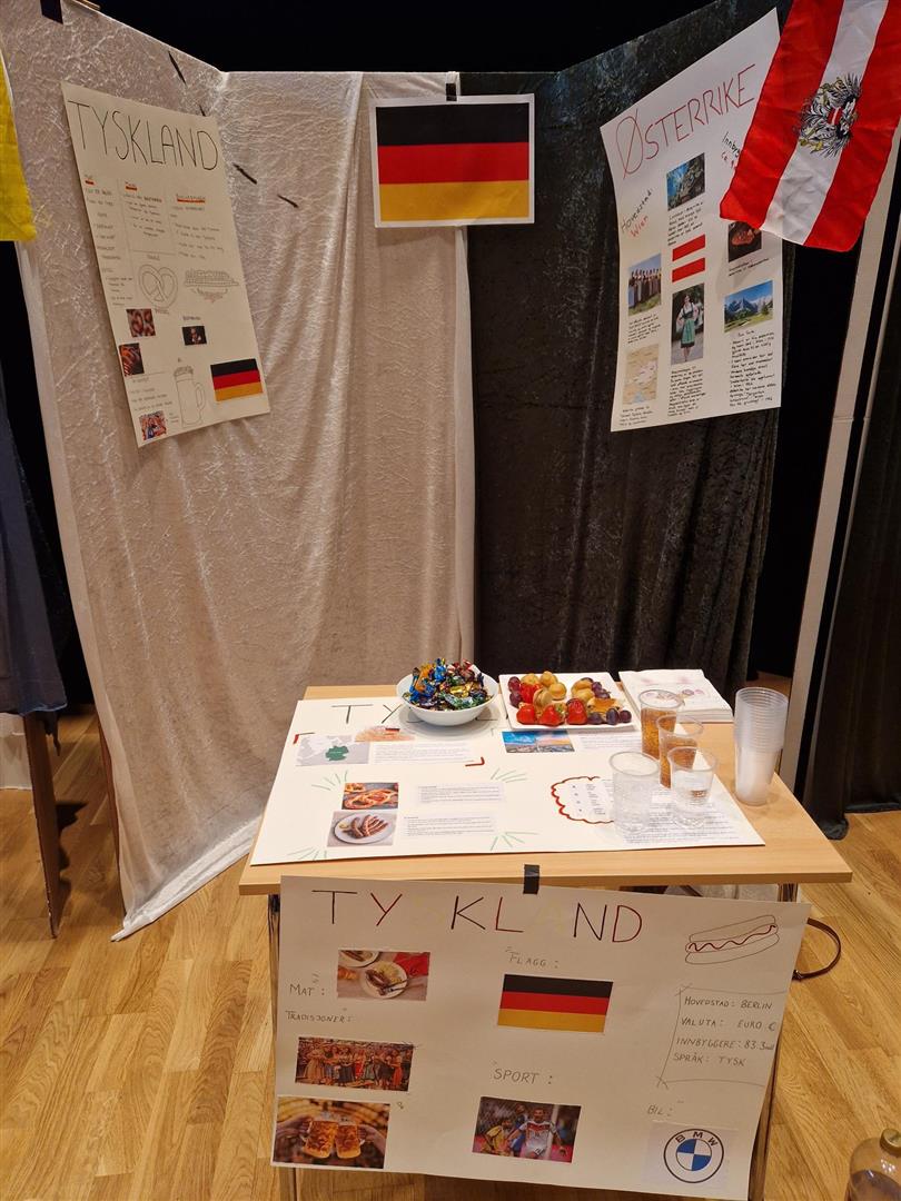 Onsdag denne uken ble det arrangert internasjonal dag. Elevene hadde laget stands med informasjonsplakater, tegnet, hengt opp flagg og hatt med gjenstander fra landet de representerte. Noen av landene man kunne lære mer om var blant annet Latvia, Tsjetsjenia, Armenia, Etiopia, Mexico, Spania, Syria og Palestina. Det var kjøpt inn snacks og kaker, og alle som ville kunne ta en tur innom i friminuttet eller sammen med faglærer i en undervisningsøkt.