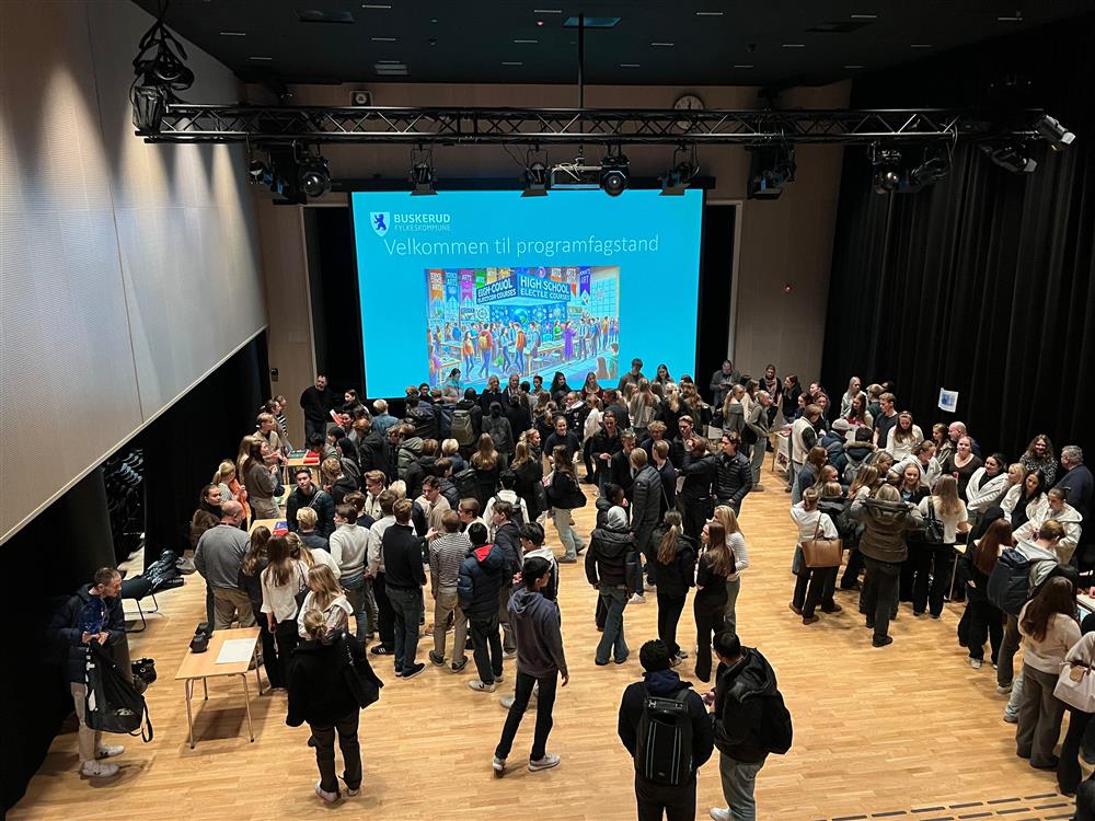 Torsdag 28.11 var alle elever på vg1 og vg2 studiespesialiserende samlet til programfagstand i Storsalen. Her fikk de god og viktig informasjon fra både faglærere og elever fra alle programfag de kan velge til neste år. Mange nysgjerrige elever fikk høre om hvordan det var å være elev i de ulike programfagene vi tilbyr på Ringerike videregående skole. Nå blir det et spennende sonderingsvalg først, før det endelige fagvalget for neste skoleår skal gjennomføres i januar. En stor takk til alle elever og faglærere som bidro til en god programfagstand!