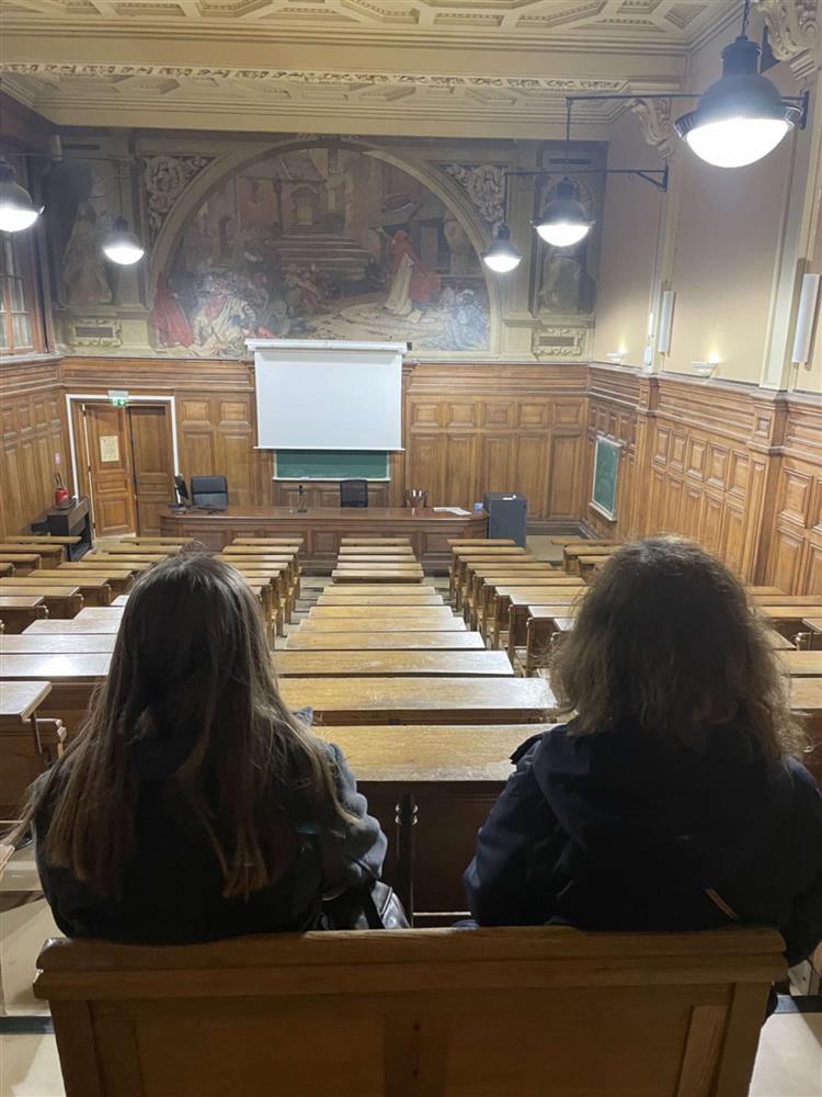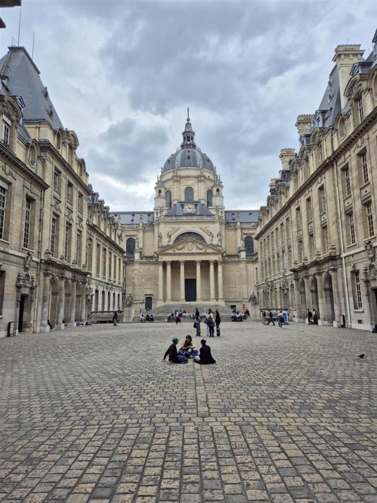 Det opprinnelige Sorbonne universitetet er en staselig bygning som rommer et helt kvartal i byen, og det har et eget tårn for astronomi-studier. Alle innganger som går rundt hele bygget har egne vakter med uniform, og alle studenter og ansatte må vise gyldig studie-/ansattkort for å slippe inn. Universitet har også et eget kapell som har inngang både utenfra og inne i selve skolegården/gårdsplassen eller æresgården som den kalles (La cour d’Honneur). Foran kapellet er det to statuer; en av Victor Hugo og en av Louis Pasteur. I tillegg er det flotte malerier på veggen, og Sorbonne-komplekset har 20 forelesningssaler, 240 laboratorier og 37 læreværelser. Området rundt Sorbonne kalles Latinerkvarteret fordi studiespråket for mange år siden var latin.