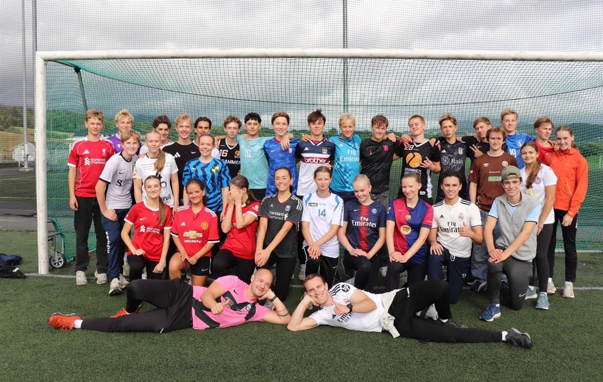Idrettslærerne Gunnar og Ingemar slang seg med på bildet med elevene, fremst på bildet