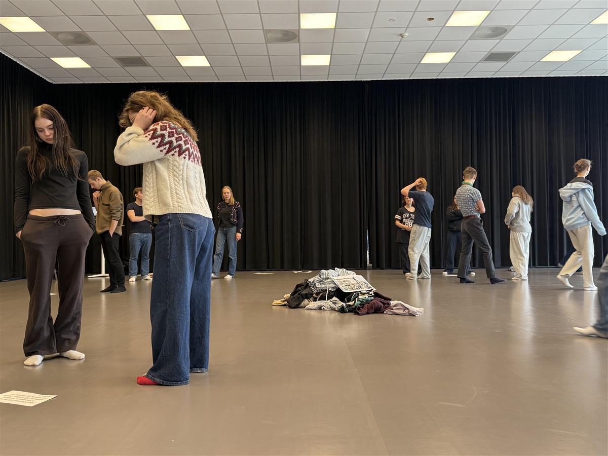 Elevene i 3MDC har jobbet med drama som metode for å utforske læreplan mål i andre fag som samfunnsfag og KRLE i faget drama og samfunn.