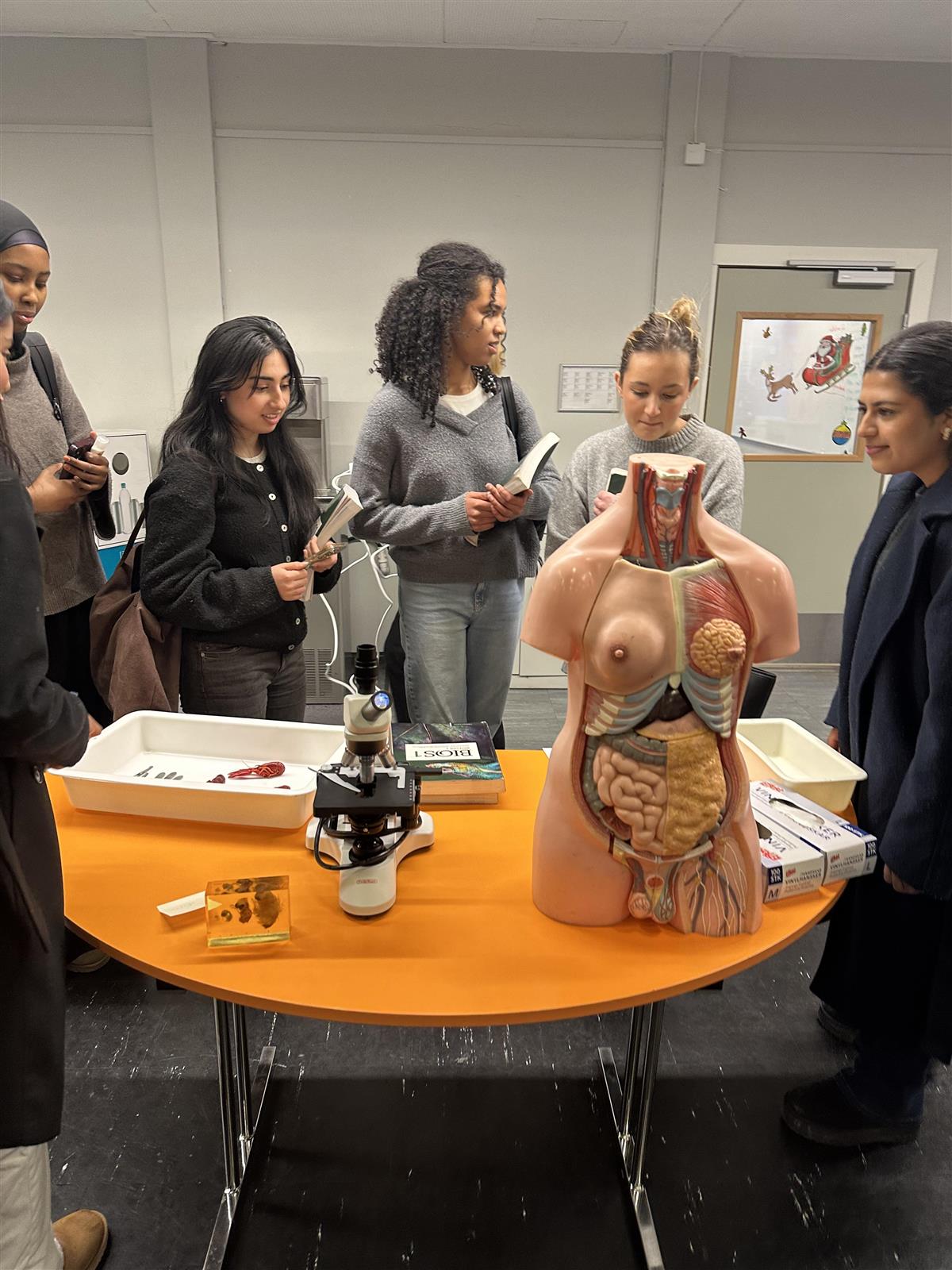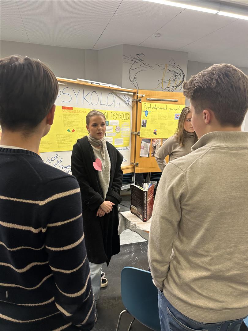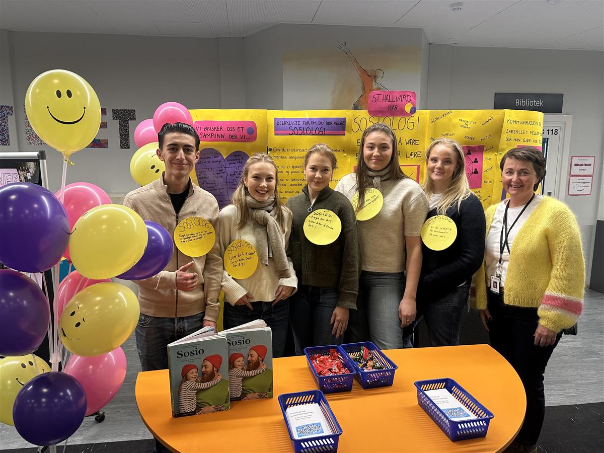 Dette er standen for faget sosiologi med elever som representerer faget sammen med faglærer Anita Aavatsmark