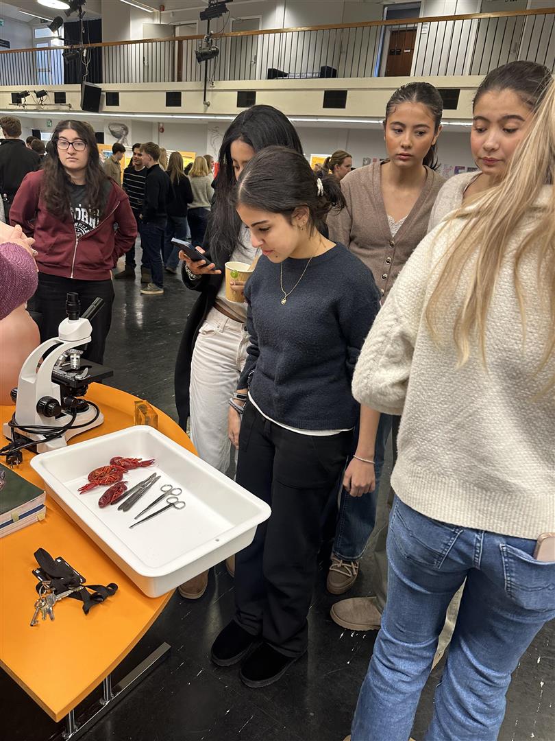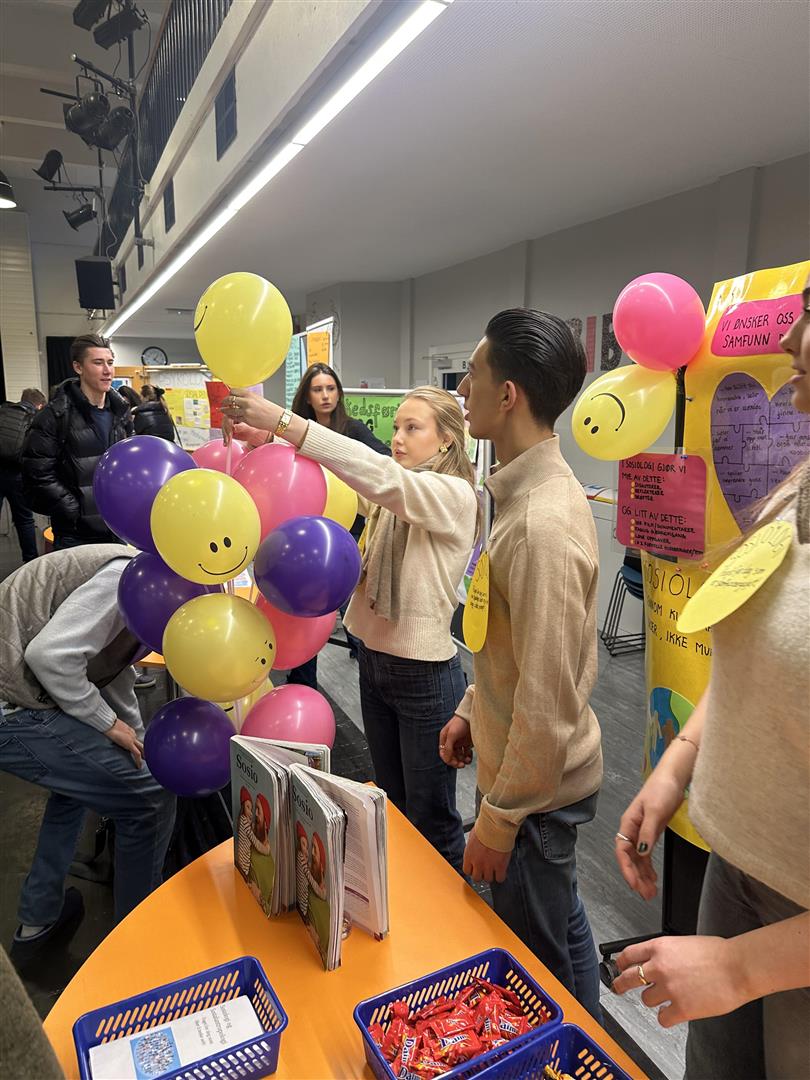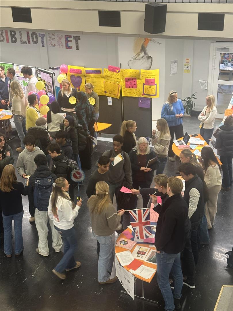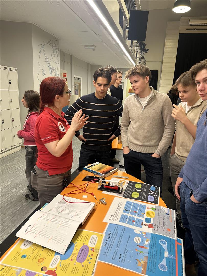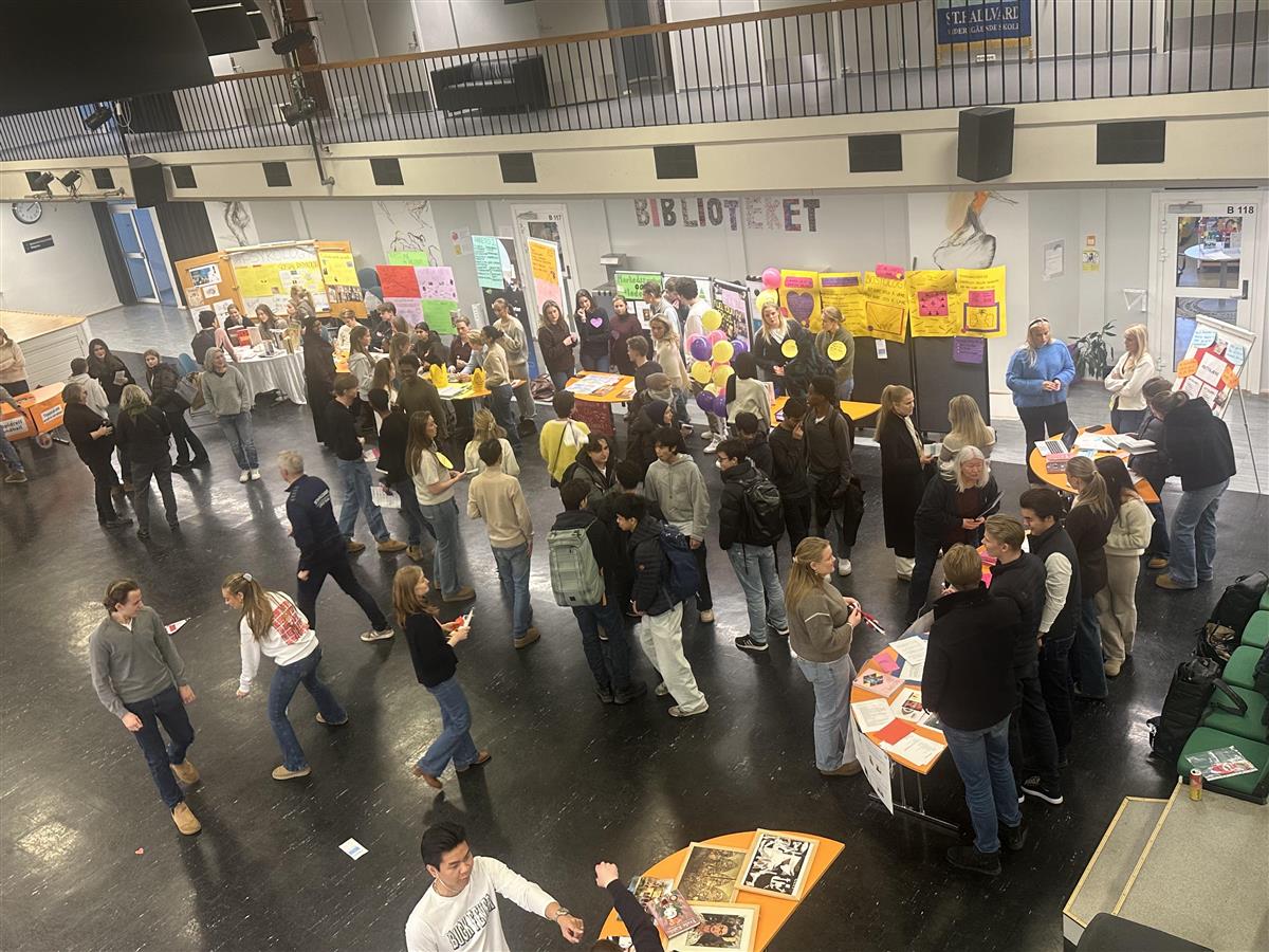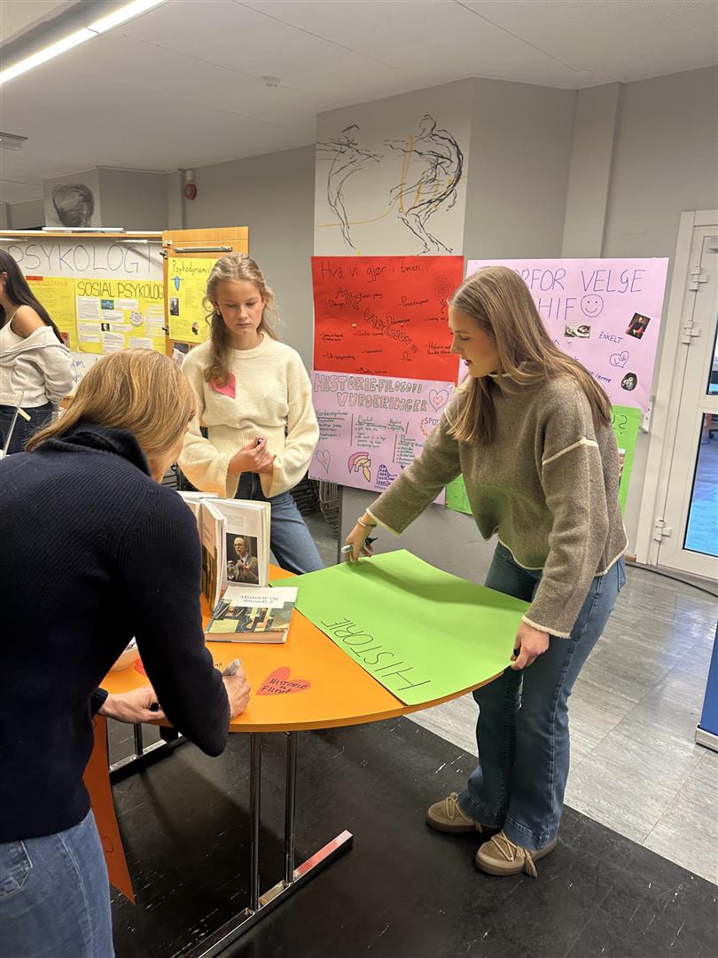 Vg1 fikk besøke stands med de ulike programfagene. Nyttig å møte elever som allerede har faget man er nysgjerrig på, samt møte faglærer.