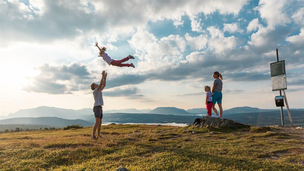 Foto av barnefamilie på fjelltur. - Klikk for stort bilde Paul Lochart / Visit Gol