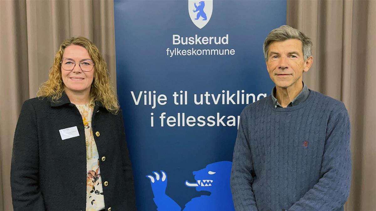 Foto av Kjersti Morseth Hallerud og Dag O. Hessen. - Klikk for stort bildeKjersti Morseth Hallerud og Dag O. Hessen under plantreffet på Kongsberg. Buskerud fylkeskommune