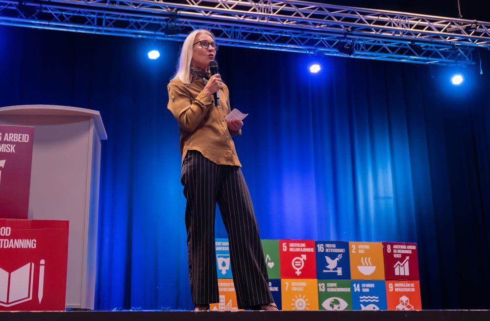 Rektor Ann-Mari Henriksen forteller at bærekraftskonferansen har blitt en viktig del av de ansattes oppstart.