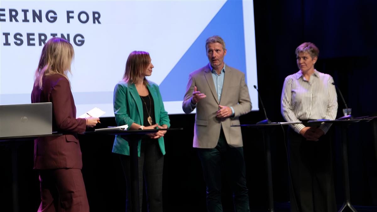 Hildegunn Fallang fra NHO Viken Oslo, fylkeskommunedirektør Jan Sivert Jøsendal og direktør i Nav Vest-Viken, Laila Gustavsen delktok i en panelsamtale om verdien av trepartssamarbeidet.