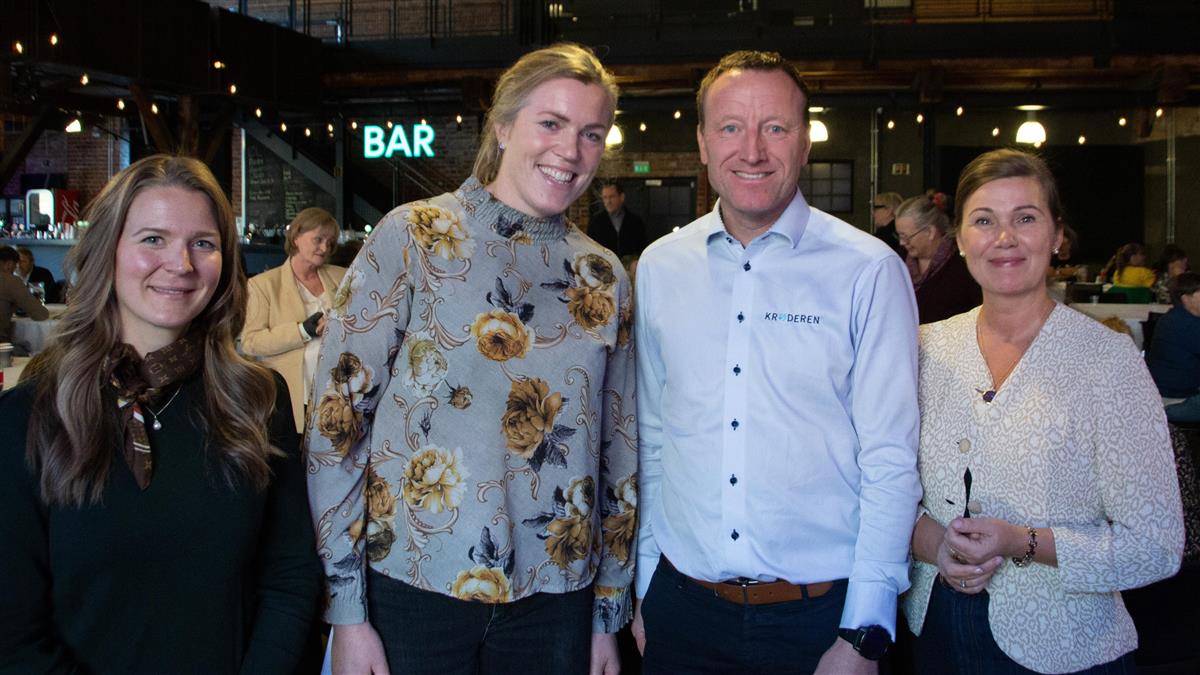 Fra venstre Malin Pettersson (VY Buss avdeling Drammen), Marianne Skinnes ( Kongsberg fylkeskommuneDefence & Aerospace As), Vegard Jelstad (Krøderen Elektro AS) og fylkesdirektør for Opplæring og kompetanse i Buskerud, Pia Elverhøi.