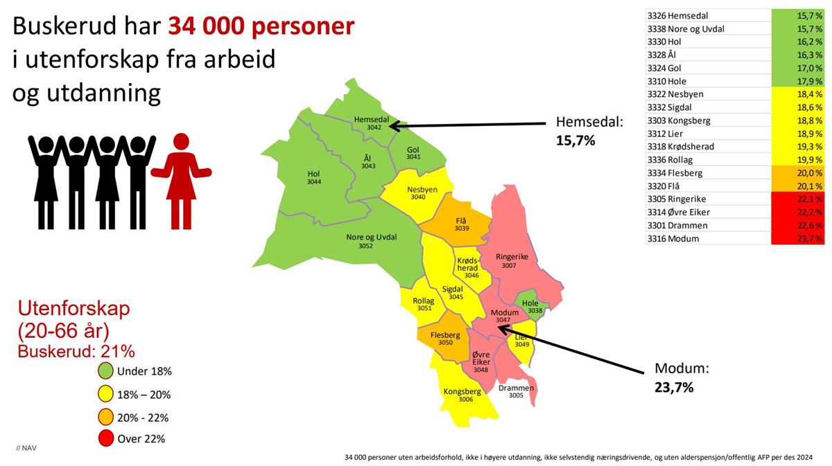 Ulf Andersen, avdelingsdirektør i statistikkseksjonen i Arbeids- og velferdsdirektoratat, viste til at veldig mange står utenfor arbeidslivet i Buskerud.